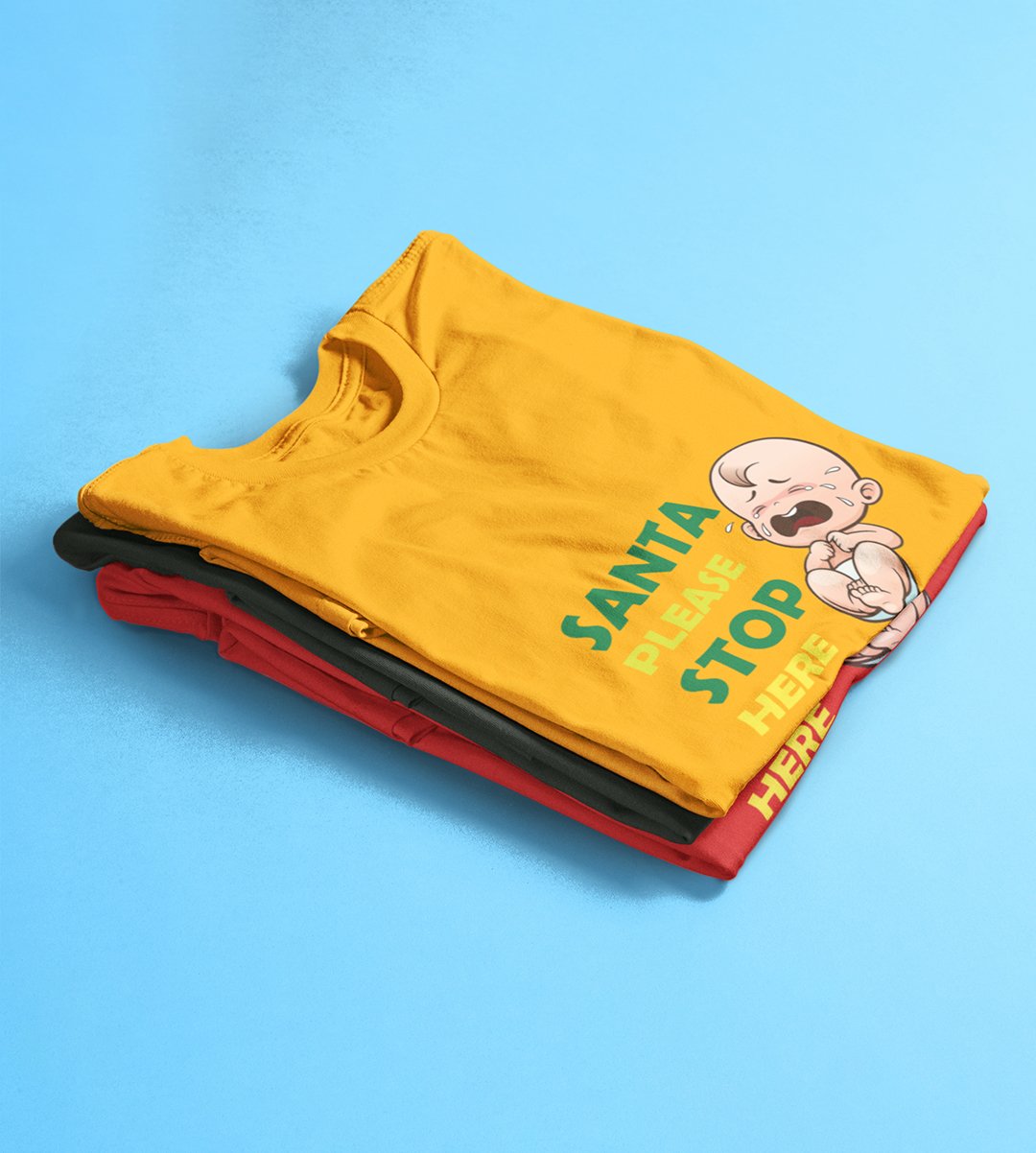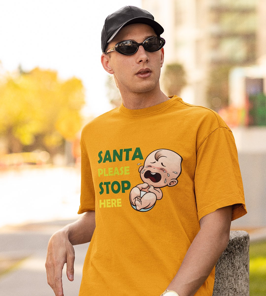 Baby Tears Over Santa(Yellow) Elegantly Printed T-shirt, Best Gift For Boys Girls