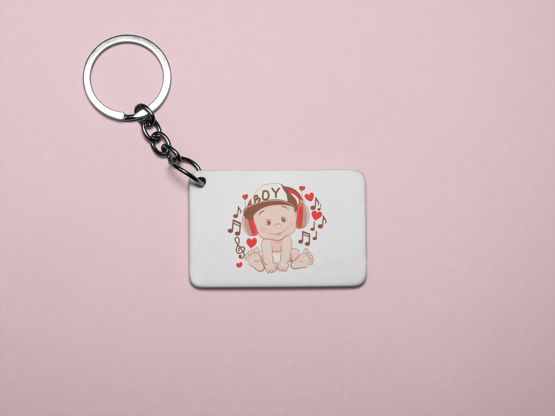 Baby With Headphone -White -Designable Musicllnstrument Keychain ( Combo Set Of 2)