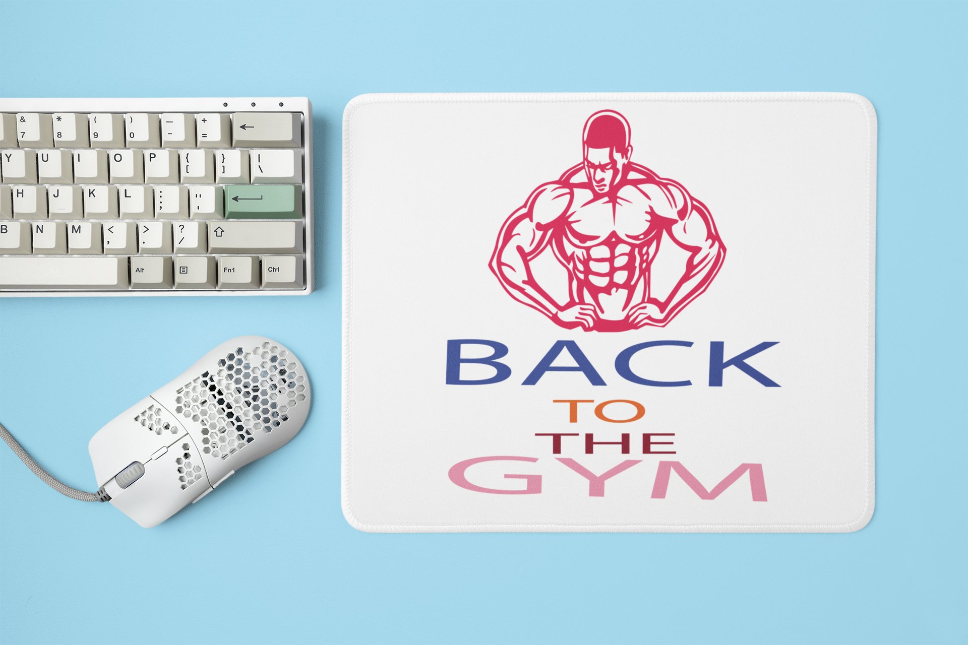 Back to the Gym, (BG Pink Muscle Man) - Printed Mousepads For Gym Lovers