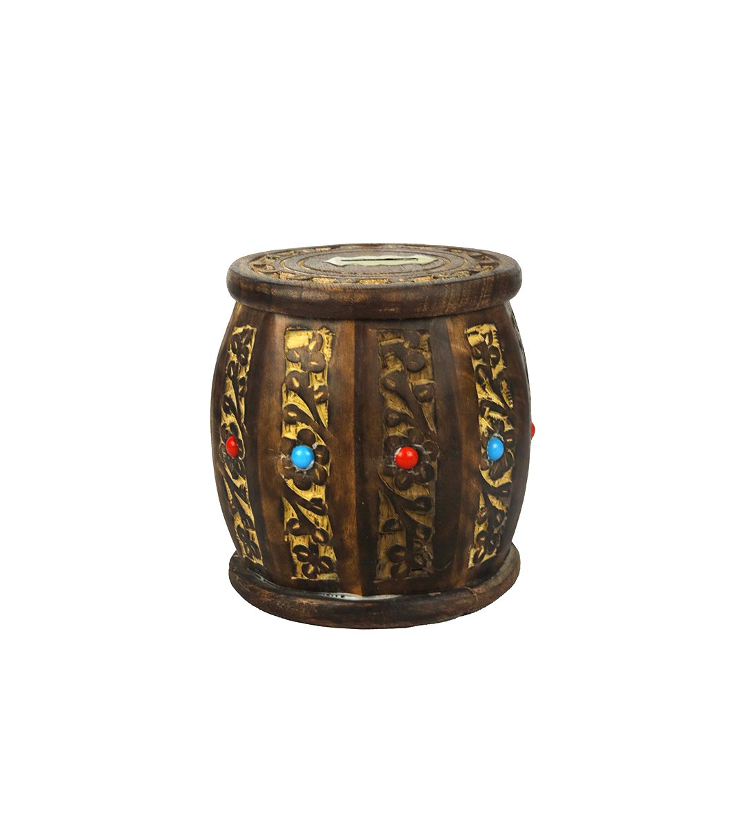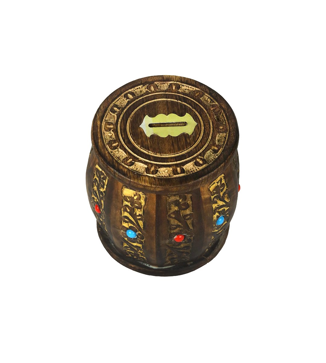 Barrel handcrafted Moti dhollak shaped money bank/ coin storage box/ gullak with coin slot for kids (Brown)