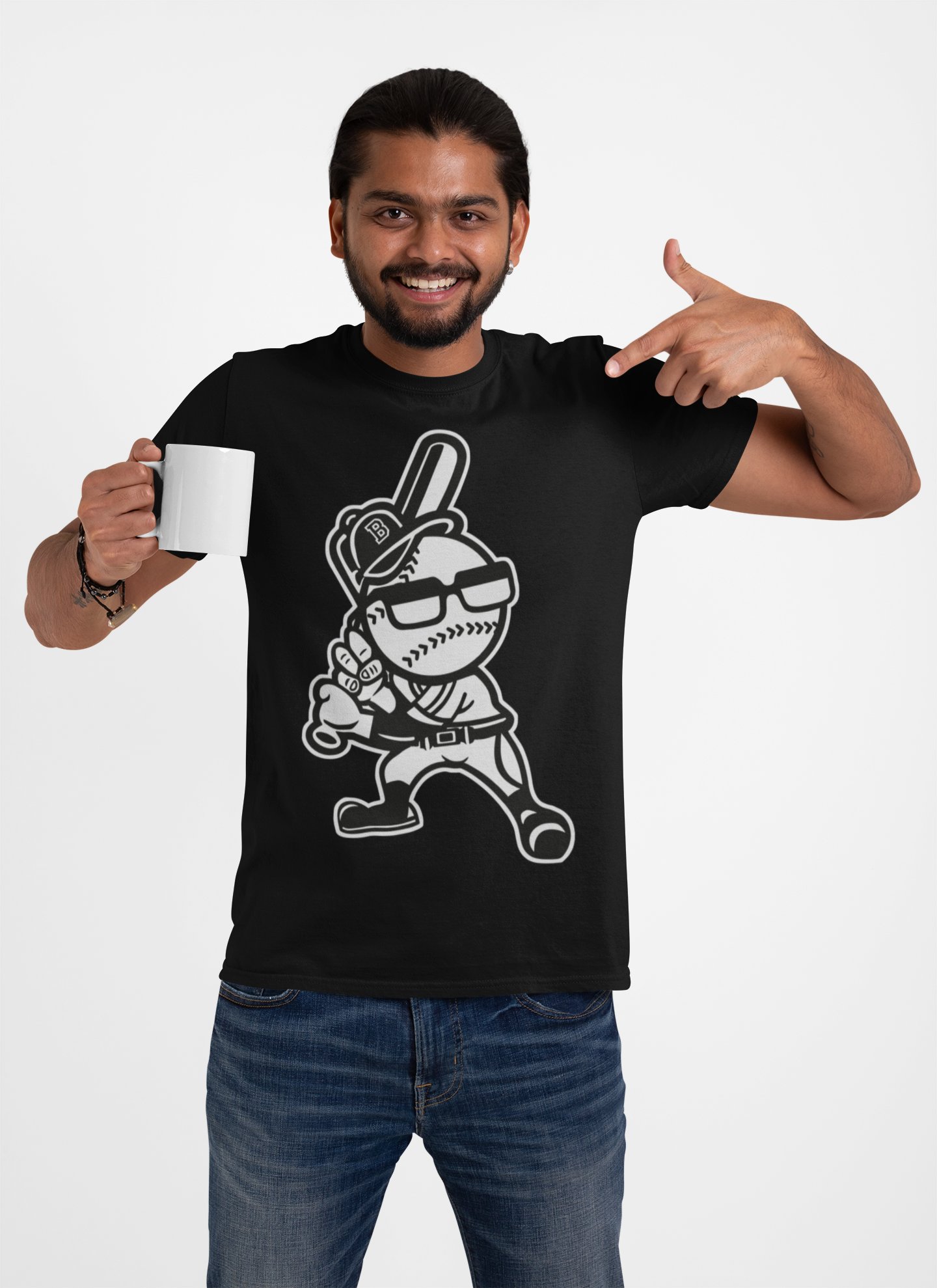 Baseball guy (white) -round crew neck cotton tshirts for men