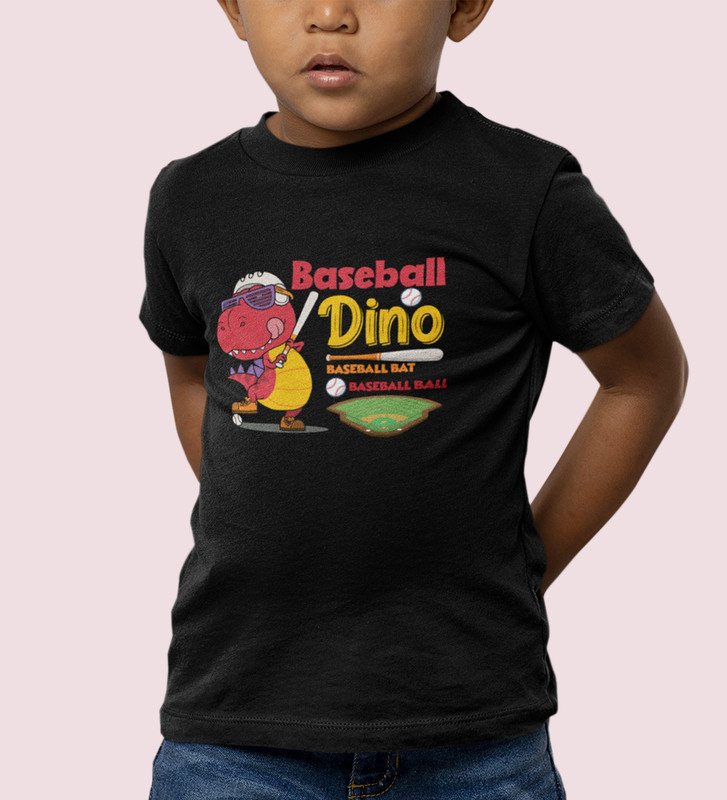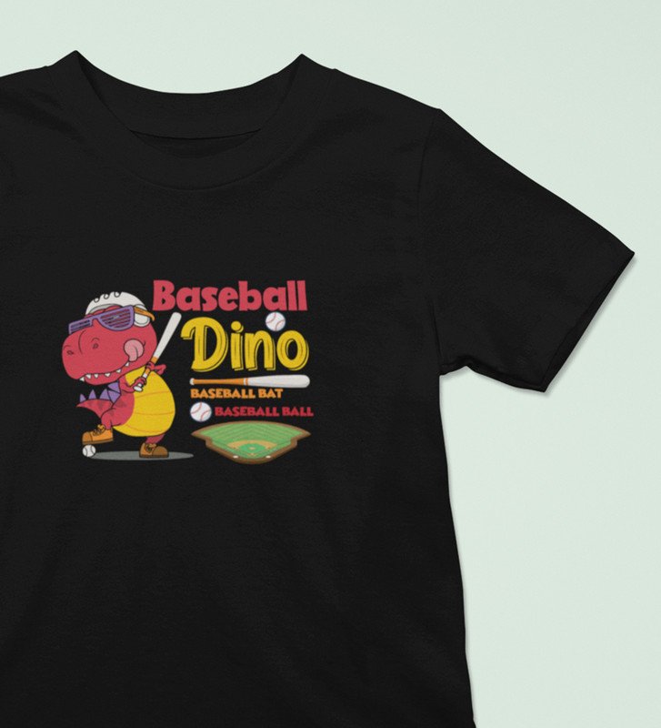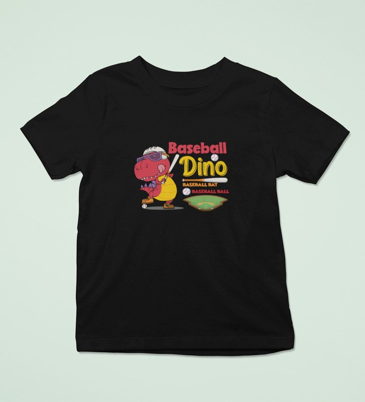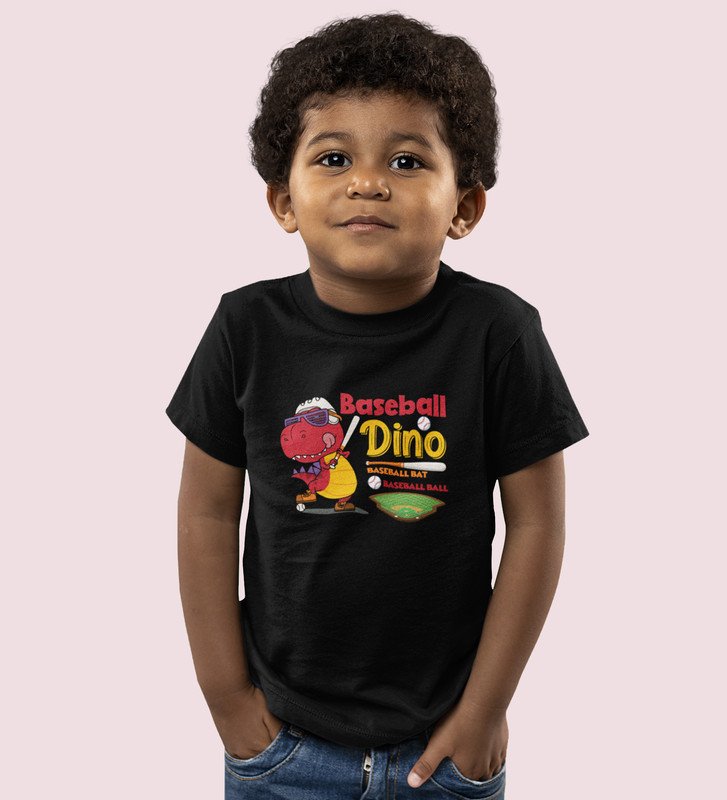 Baseballer Dino, Boys Round Neck Blended Cotton Tshirt