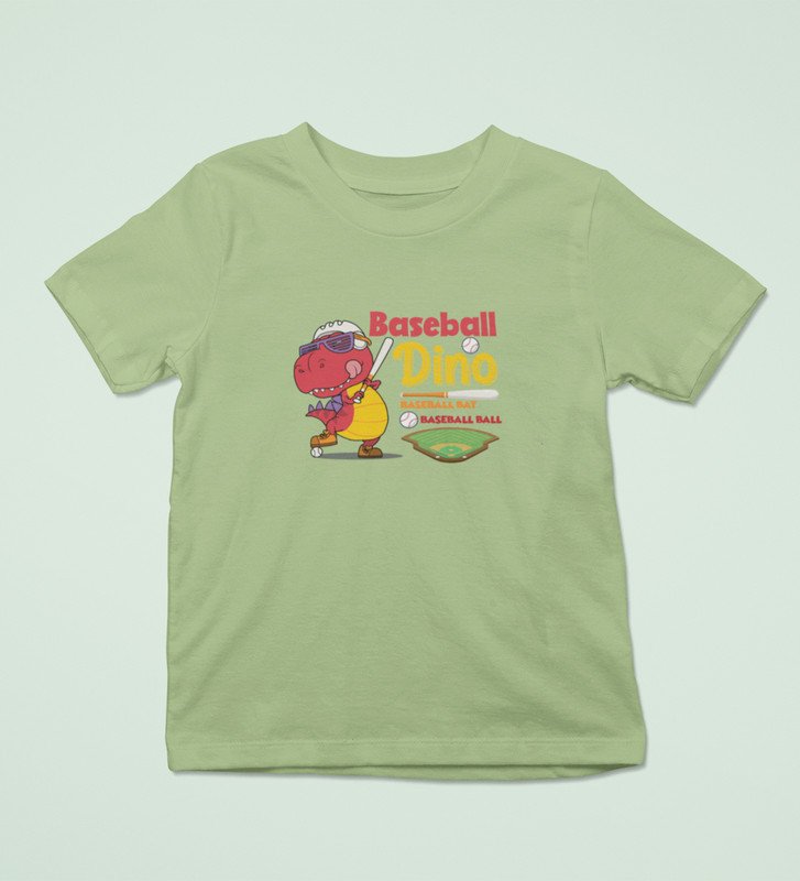 Baseballer Dino, Boys Round Neck Blended Cotton Tshirt