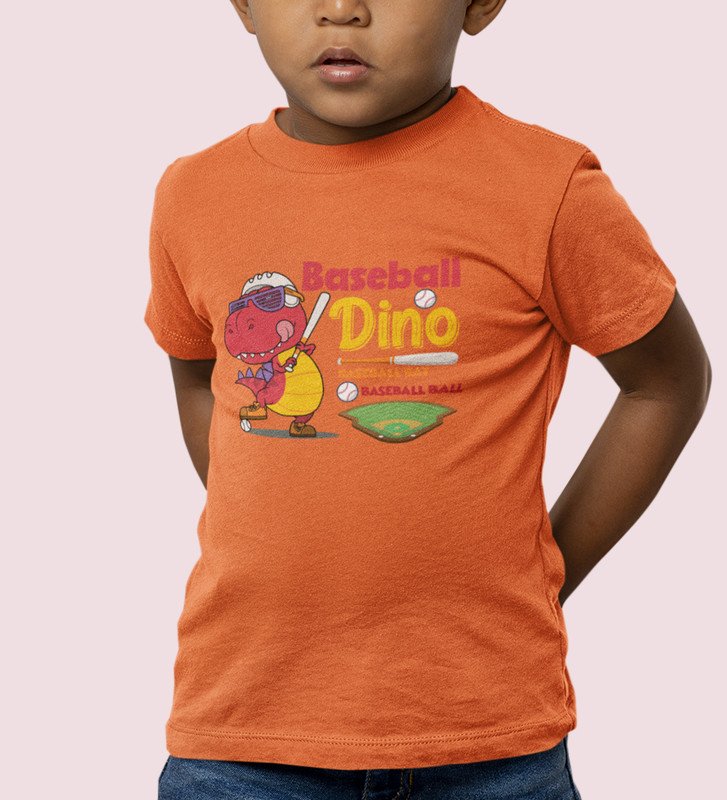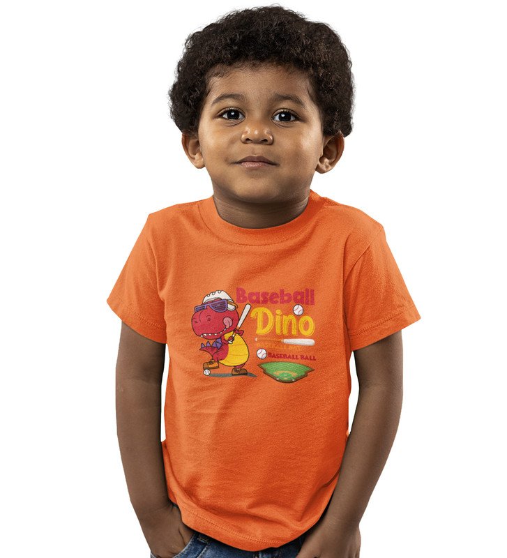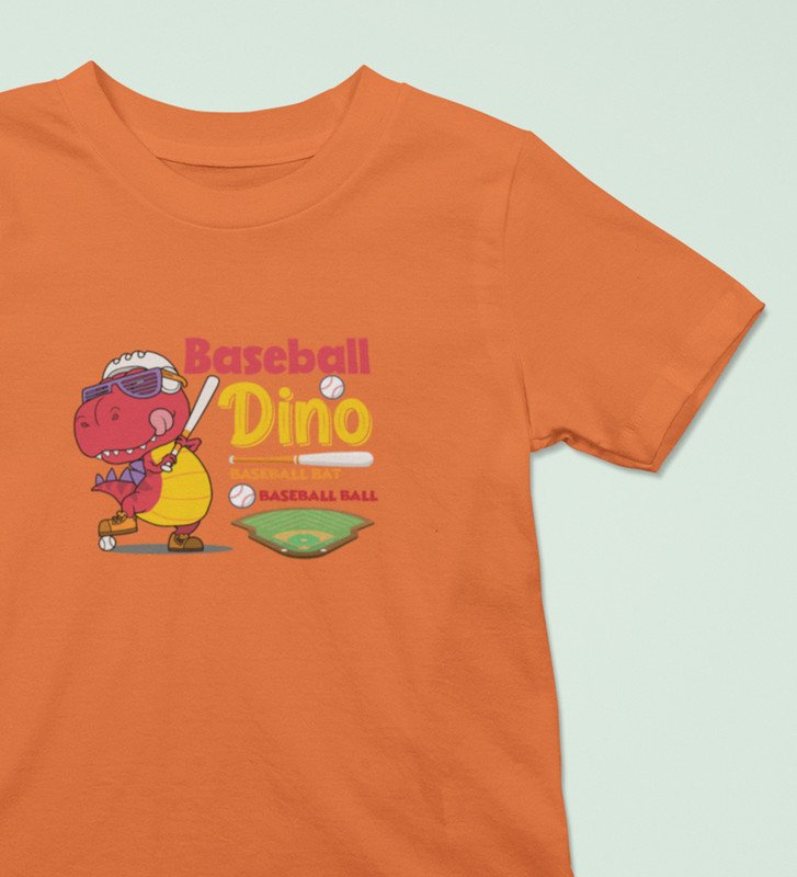 Baseballer Dino, Boys Round Neck Blended Cotton Tshirt