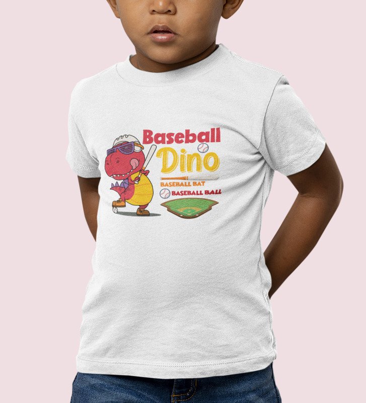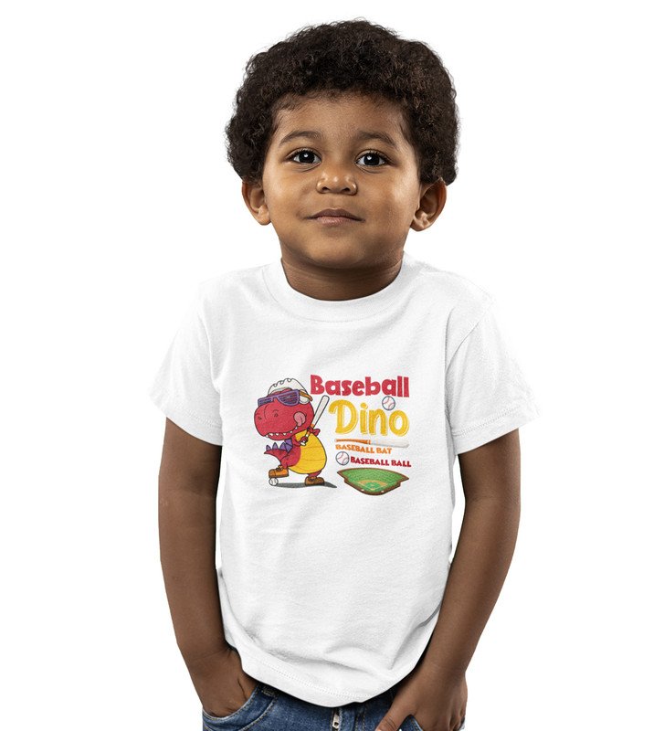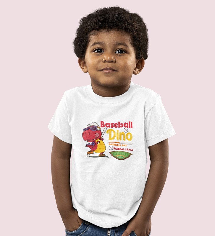 Baseballer Dino, Boys Round Neck Blended Cotton Tshirt
