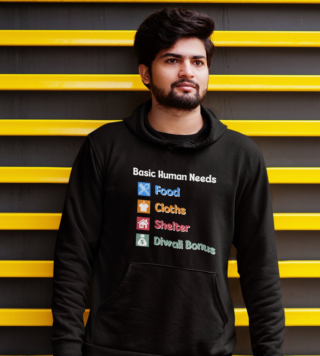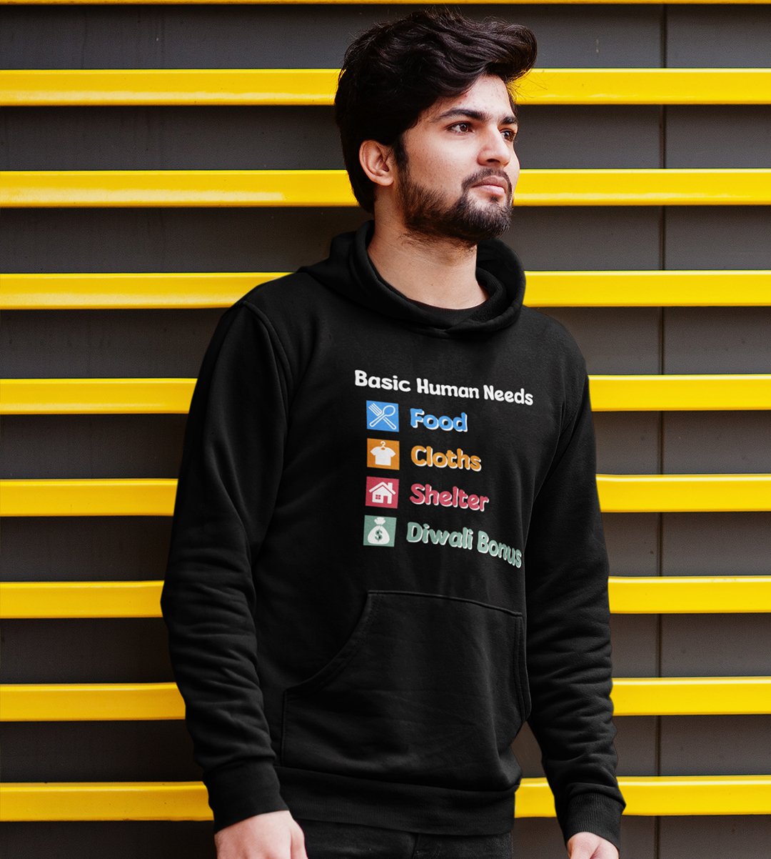 Basic human needs printed diwali themed black Hoodie specially for diwali festival