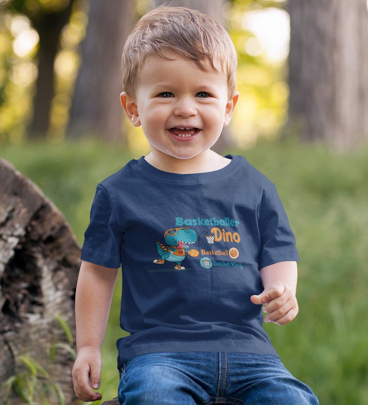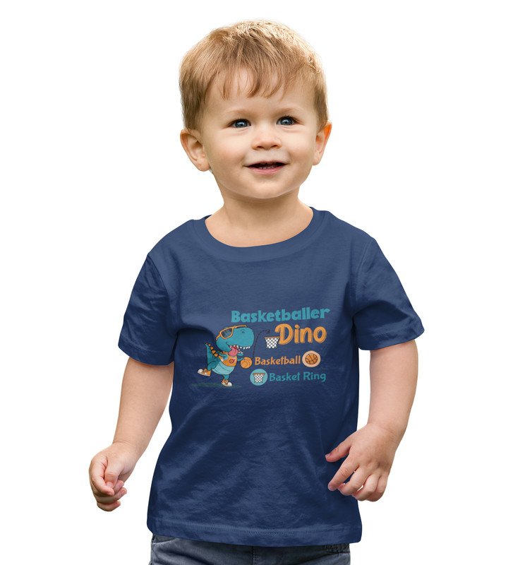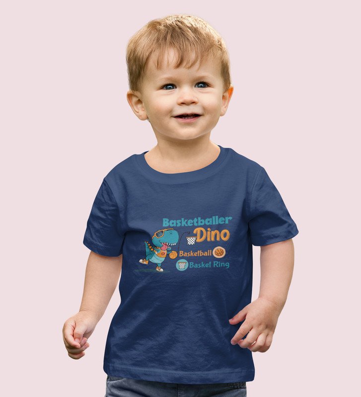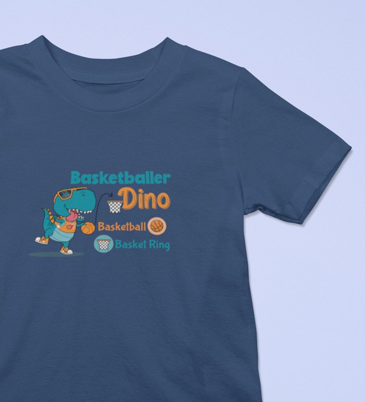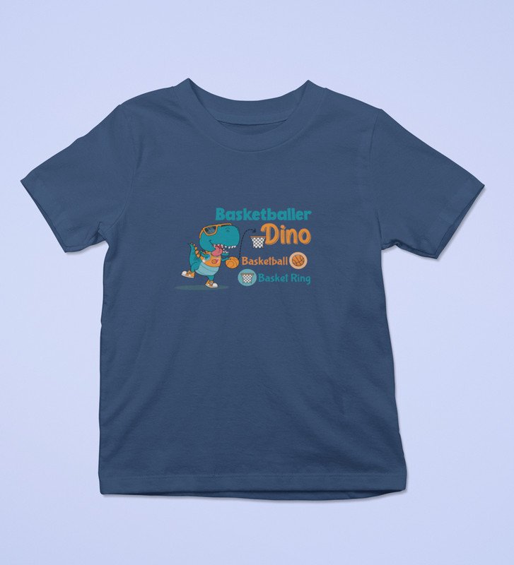Basketballer Dino, Printed Cotton T-shirt (Navy Blue) for Boys