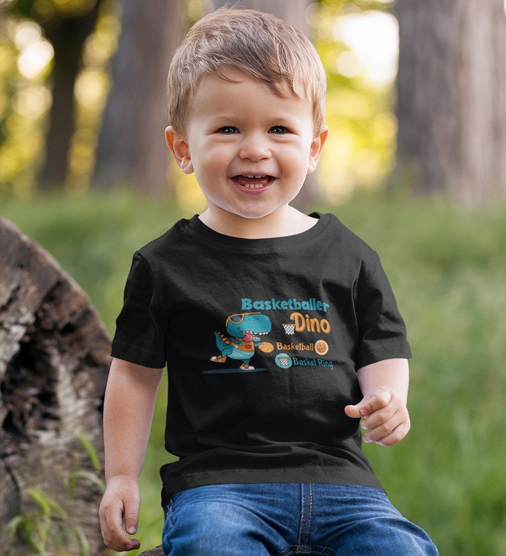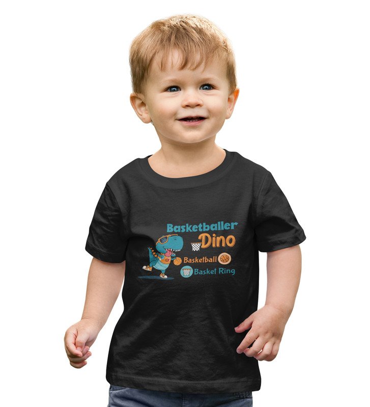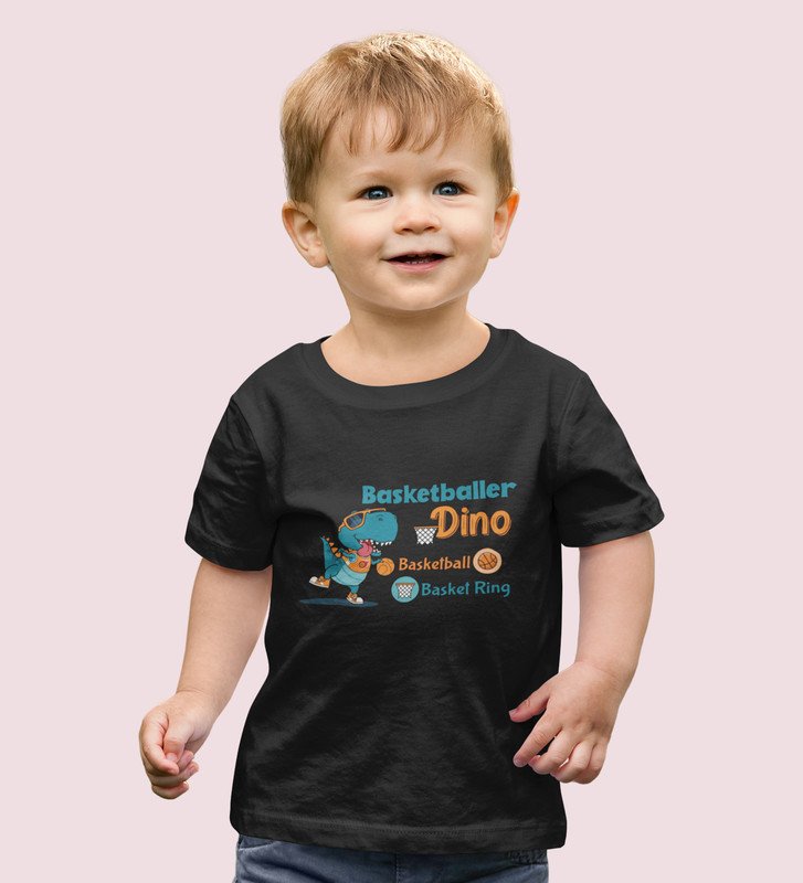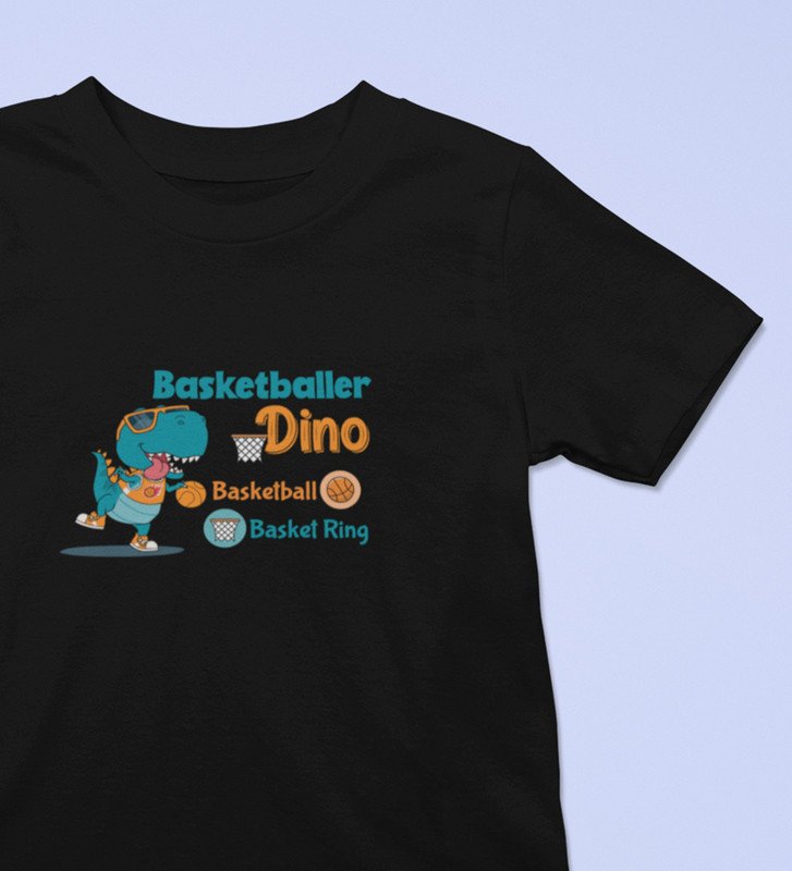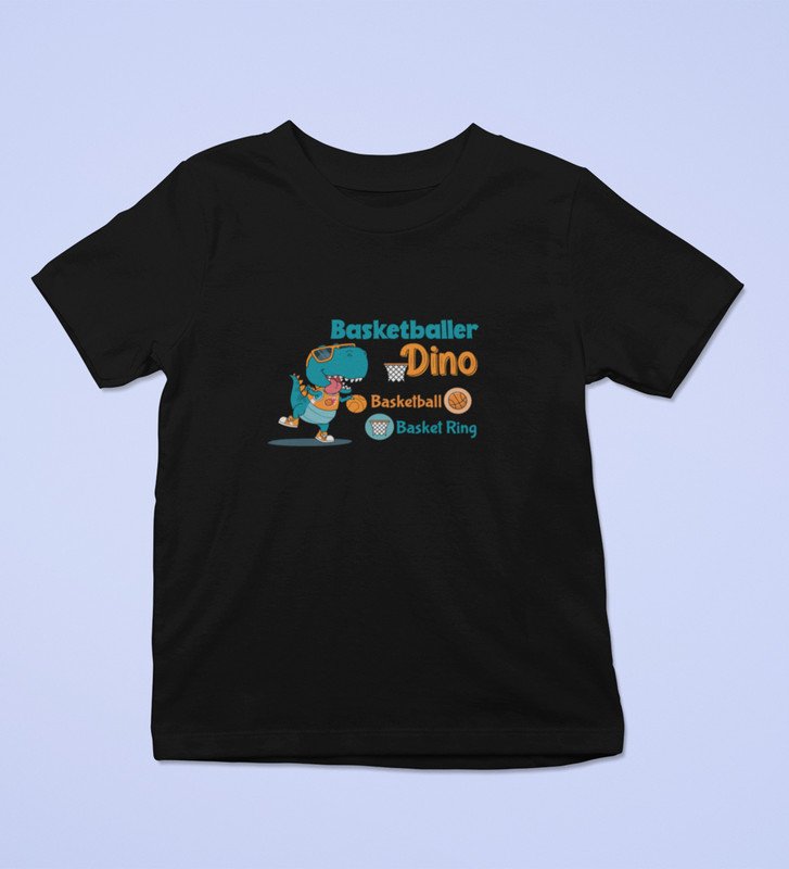 Basketballer Dino, Printed Cotton Tshirt (black) for Boys