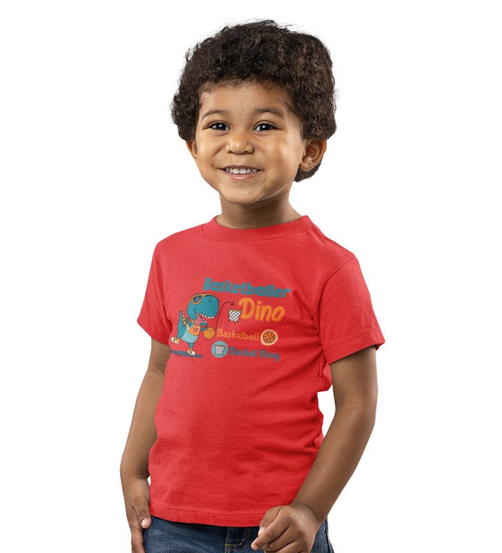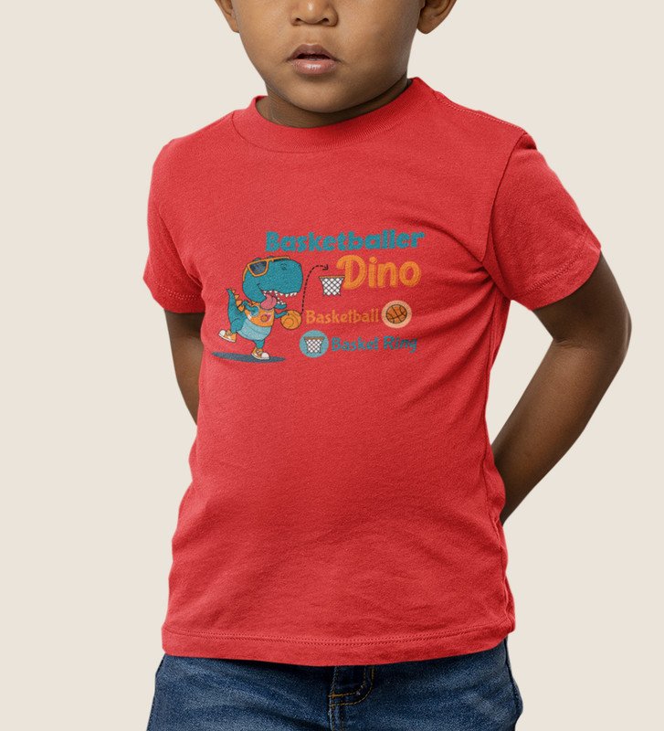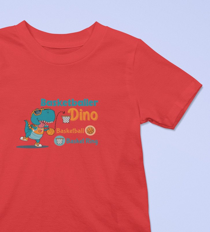 Basketballer Dino, Printed Cotton Tshirt for Boys