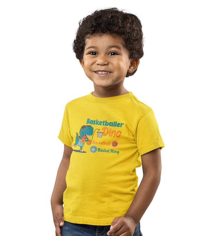Basketballer Dino, Printed Cotton Tshirt for Boys
