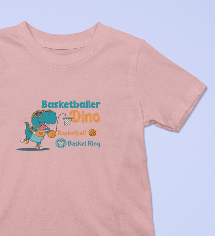 Basketballer Dino, Printed Cotton Tshirt for Boys