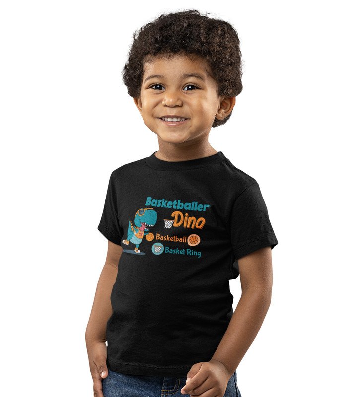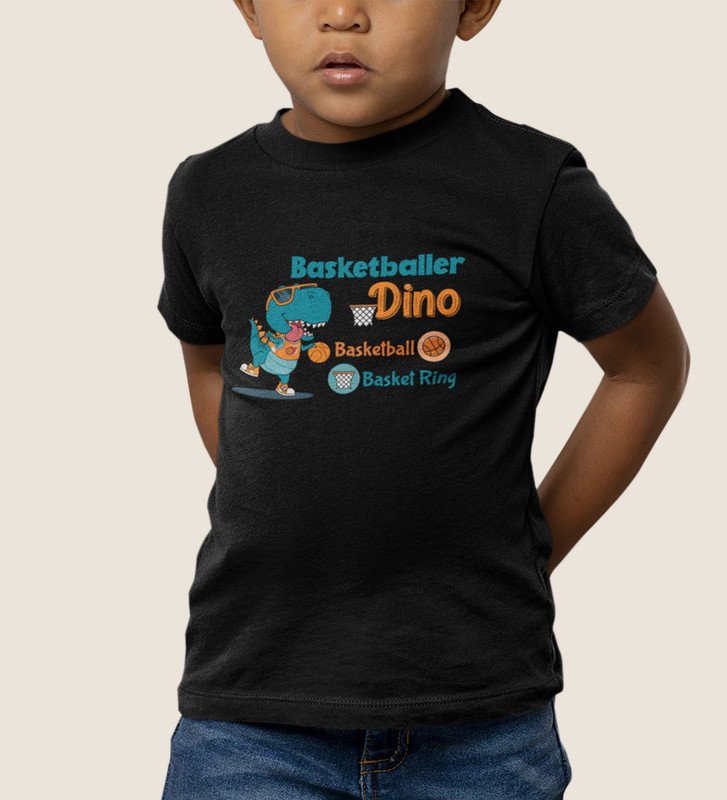Basketballer Dino, Printed Cotton Tshirt for Boys