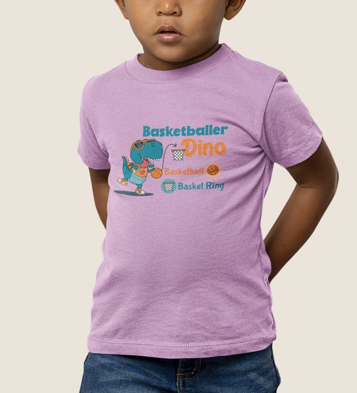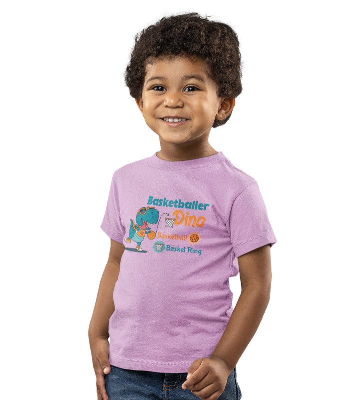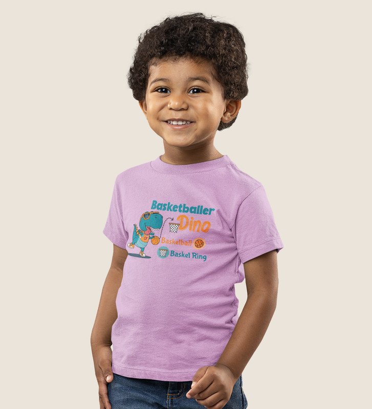 Basketballer Dino, Printed Cotton Tshirt for Boys
