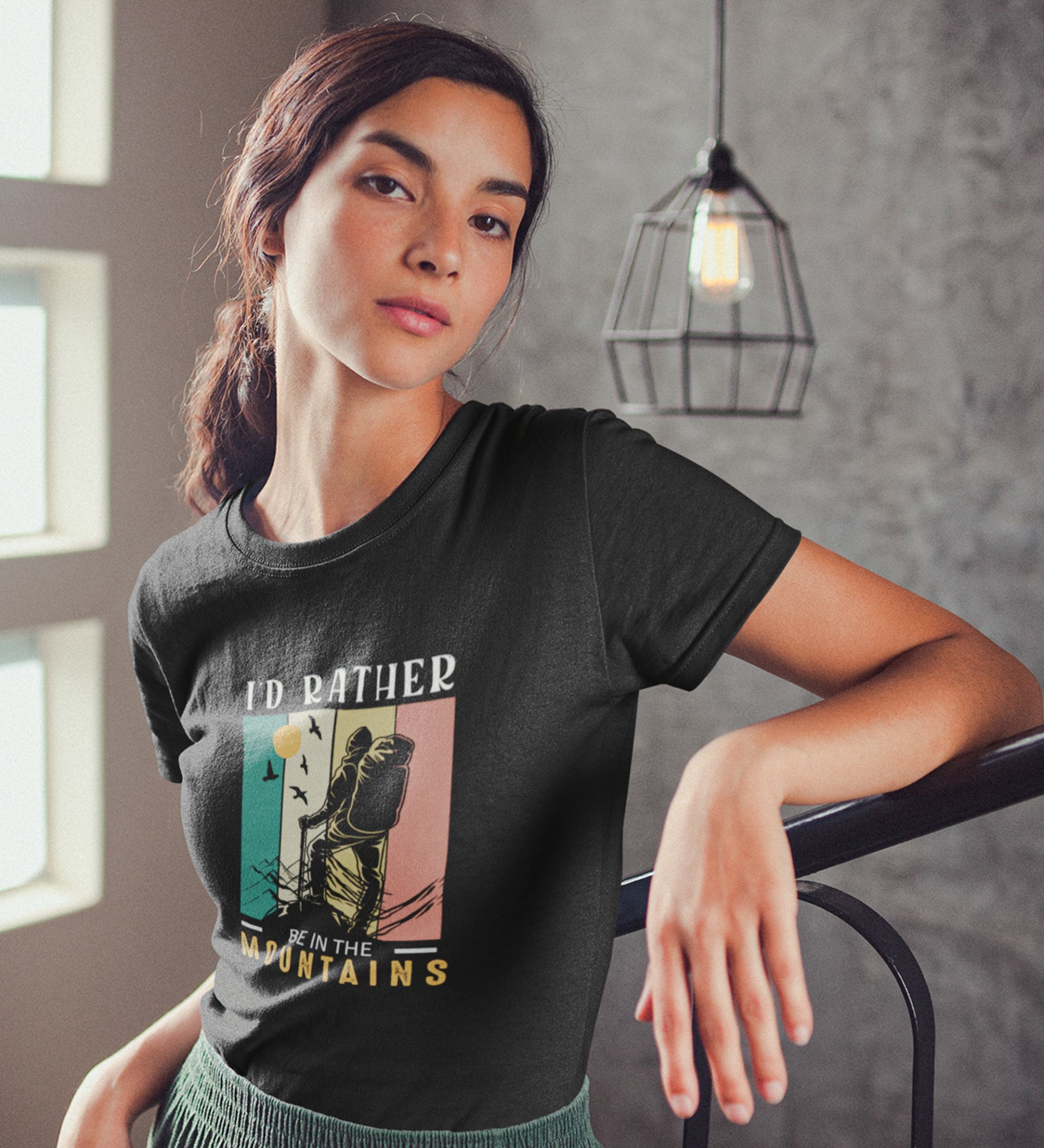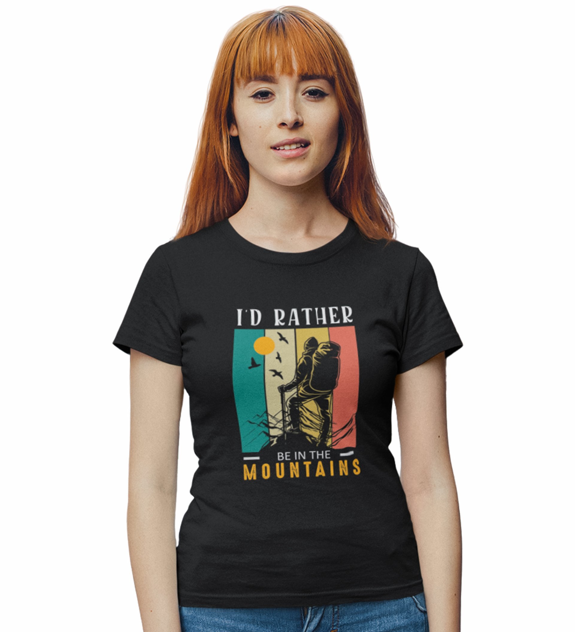 HopOfferIn The Mountains Black Round Neck Cotton Half Sleeved Women's T-Shirt with Printed Graphics