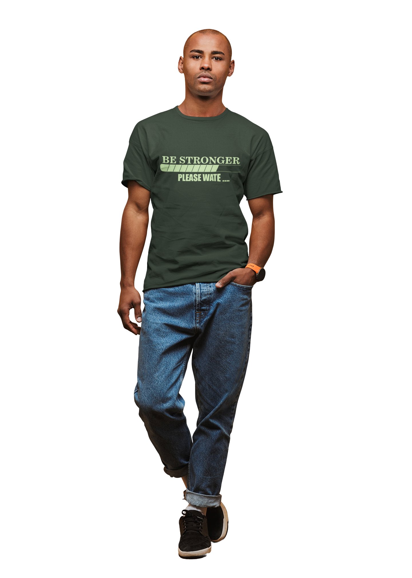 Be Stronger, Please Wait, (BG Green), Round Neck Gym Tshirt - Foremost Gifting Material for Your Friends and Close Ones
