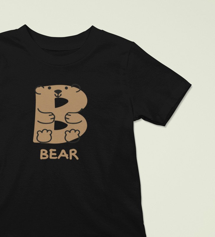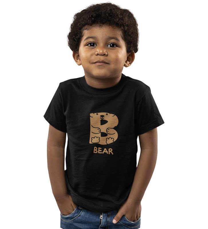Beary bear, Printed Cotton Tshirt (Black) for Boys