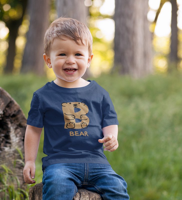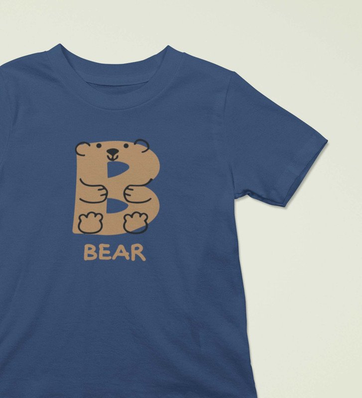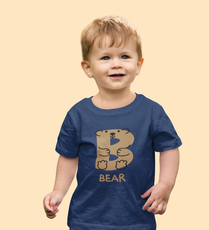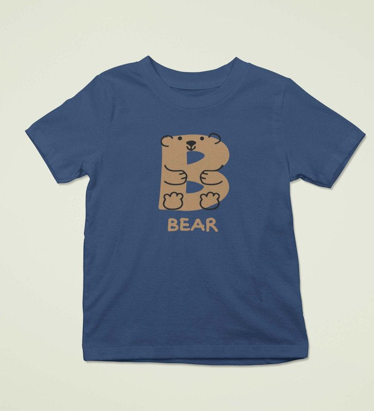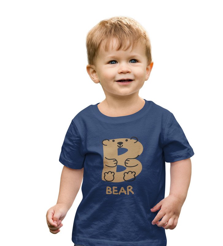 Beary bear, Printed Cotton tshirt (Navy blue) for Boys