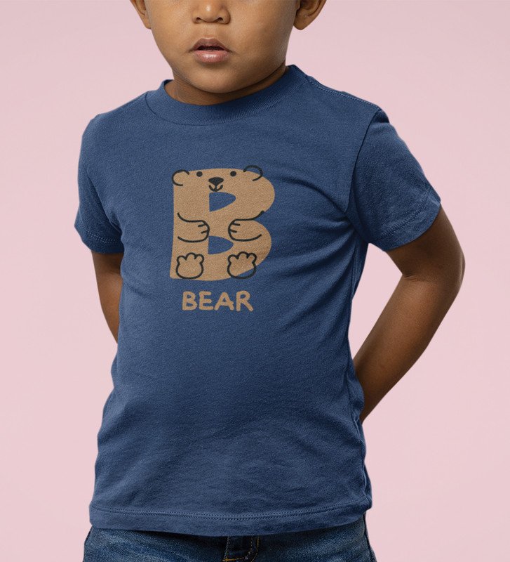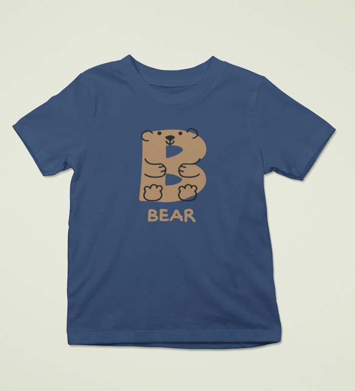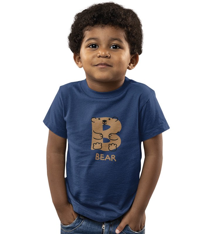 Beary bear, Printed Cotton Tshirt (Navy blue) for Boys