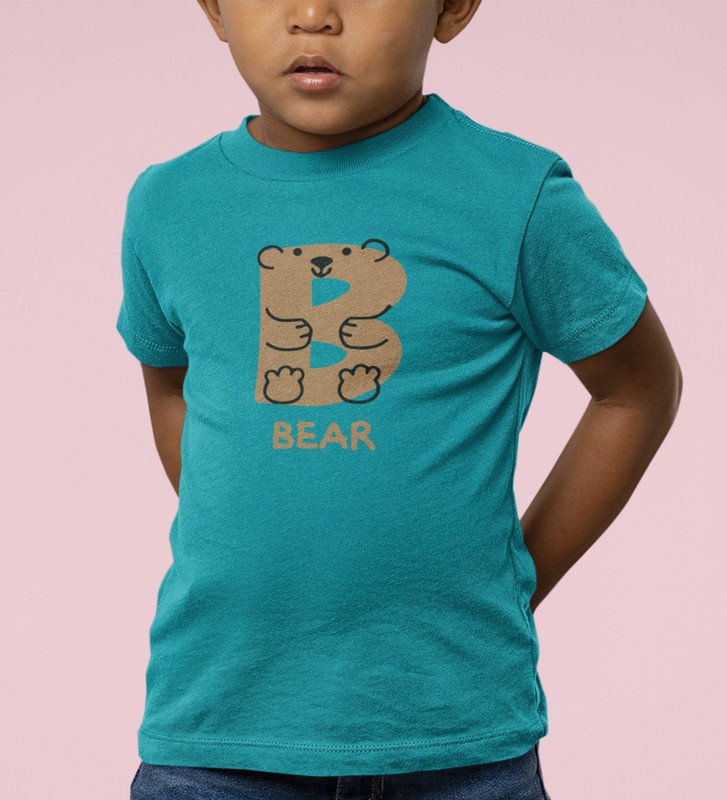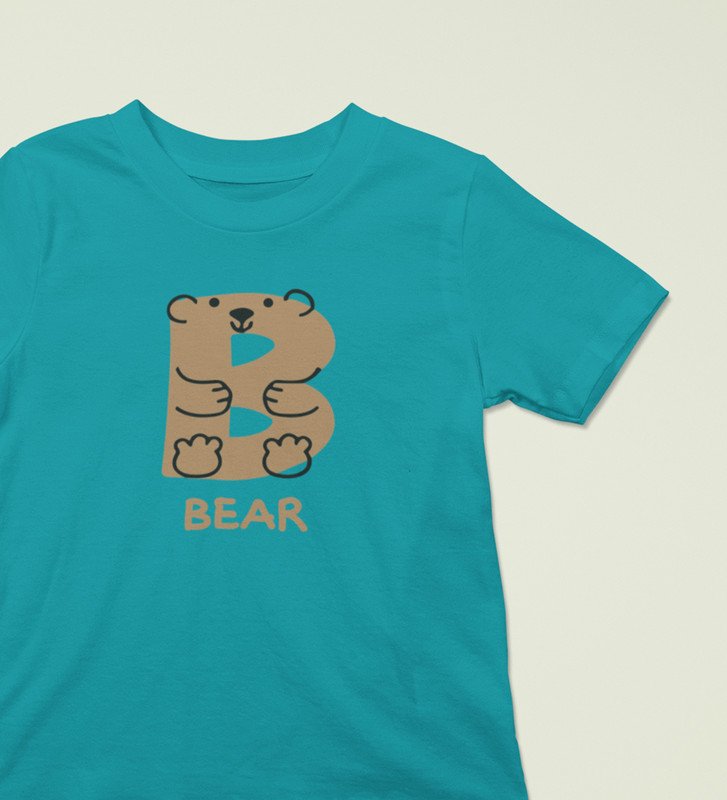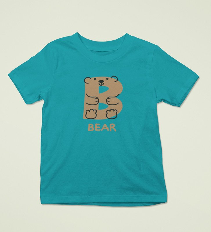 Beary bear, Printed Cotton Tshirt (Teal) for Boys