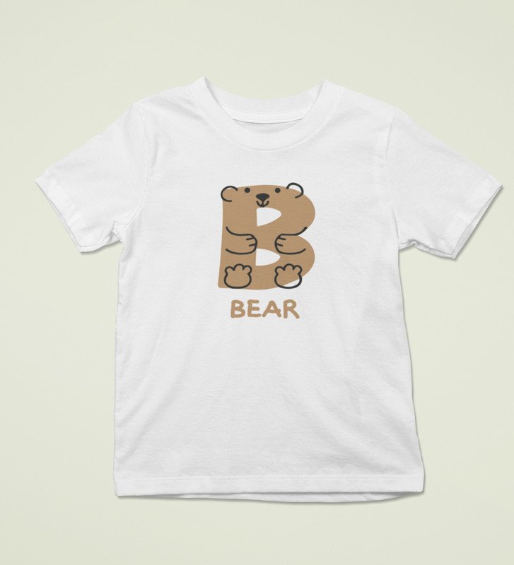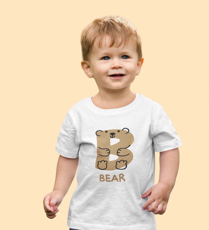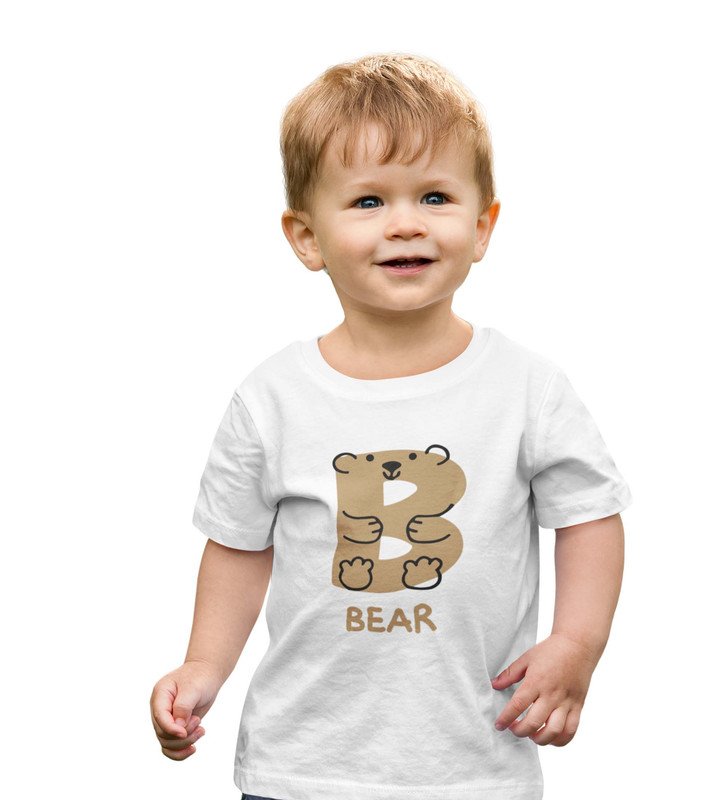 Beary bear, Printed Cotton tshirt (white) for Boys
