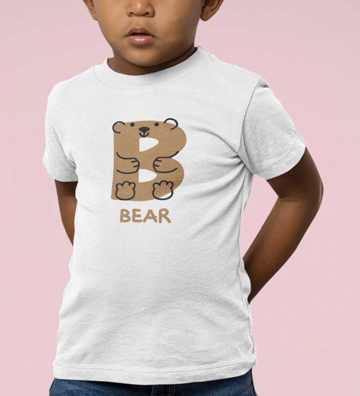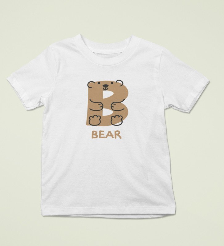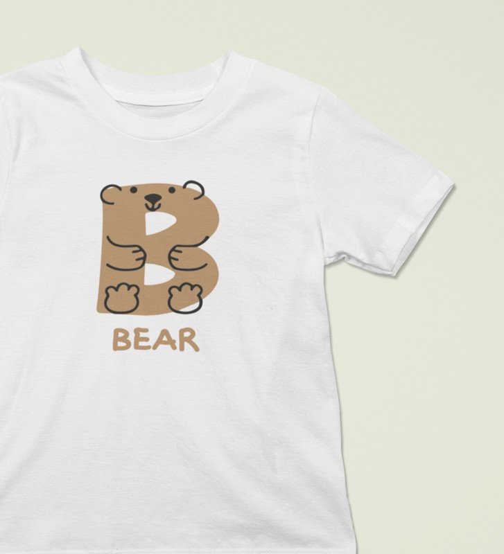 Beary bear, Printed Cotton Tshirt (White) for Boys