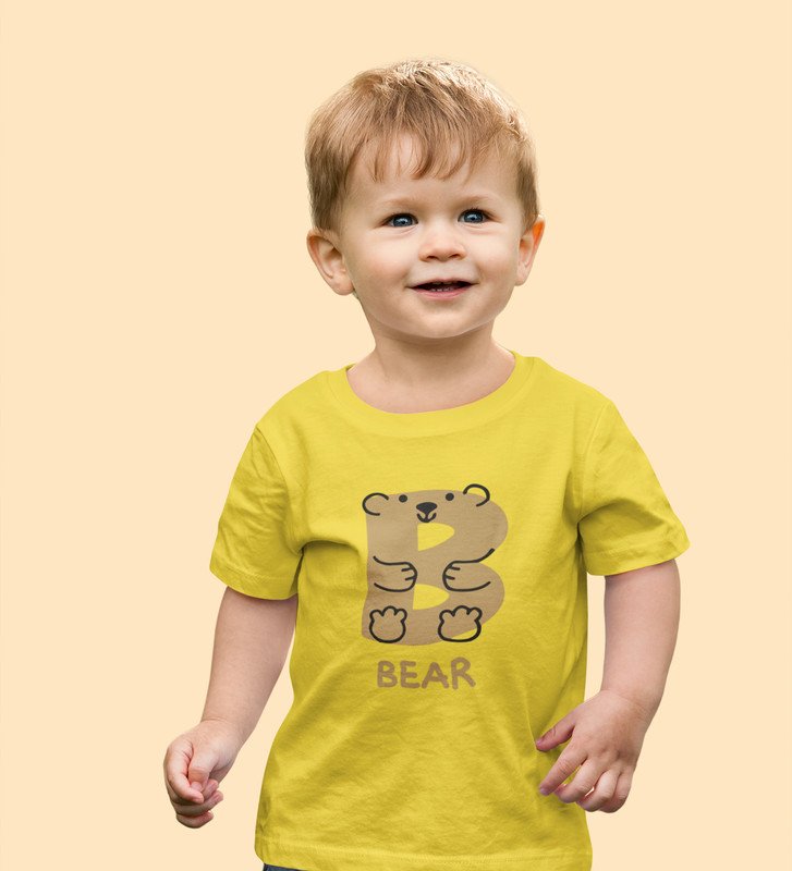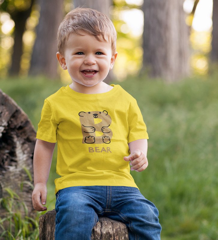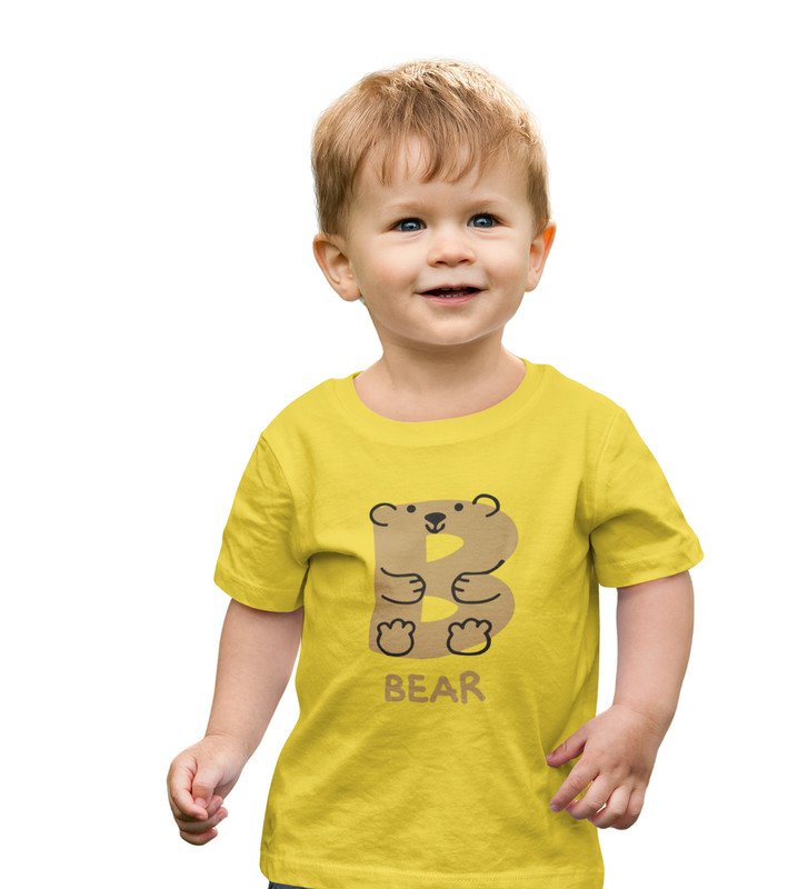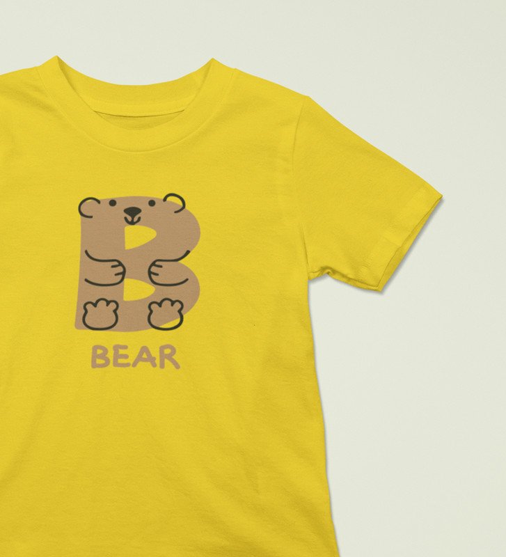 Beary bear, Printed Cotton tshirt (yellow) for Boys