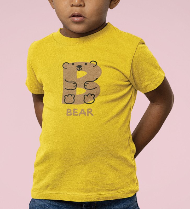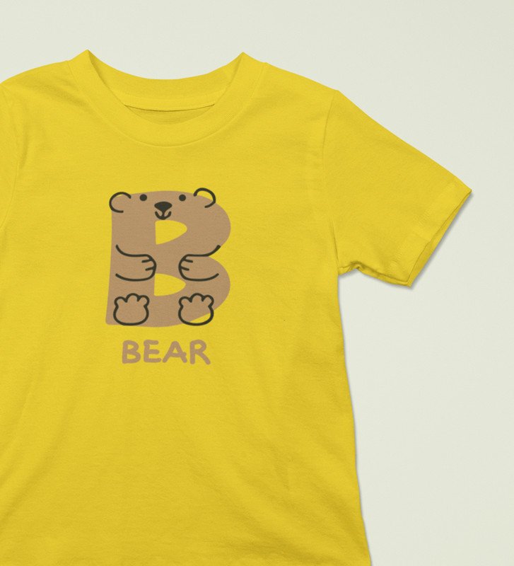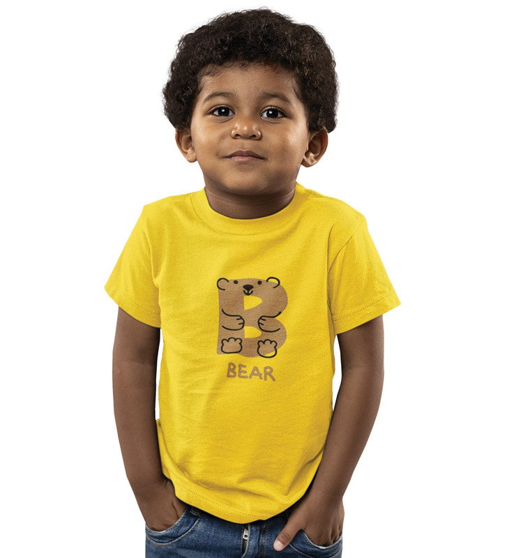 Beary bear, Printed Cotton Tshirt (Yellow) for Boys