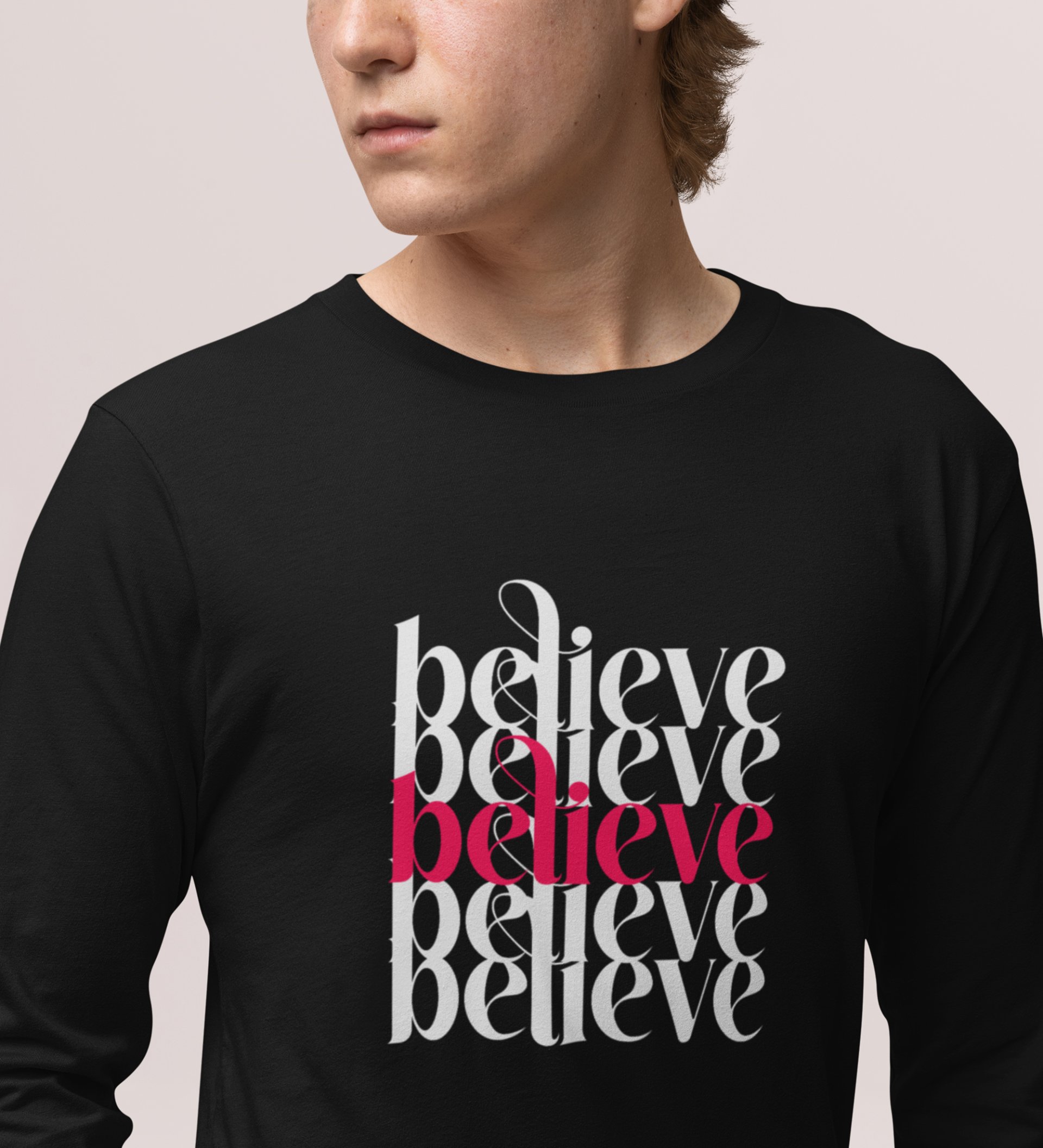 Believe In Yourself: Motivational DesignerFull Sleeve T-shirt Black Unique Gift For Secret Santa