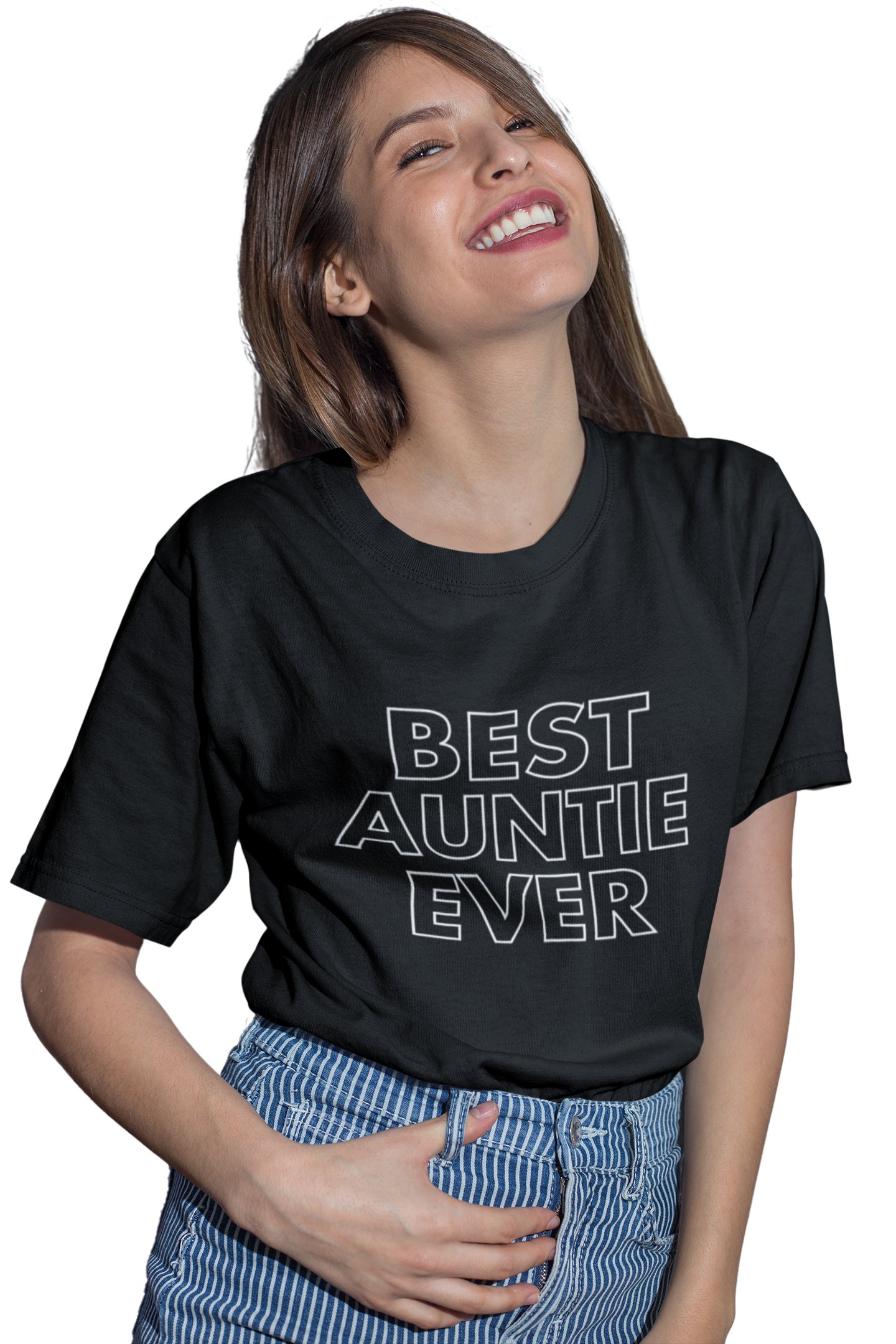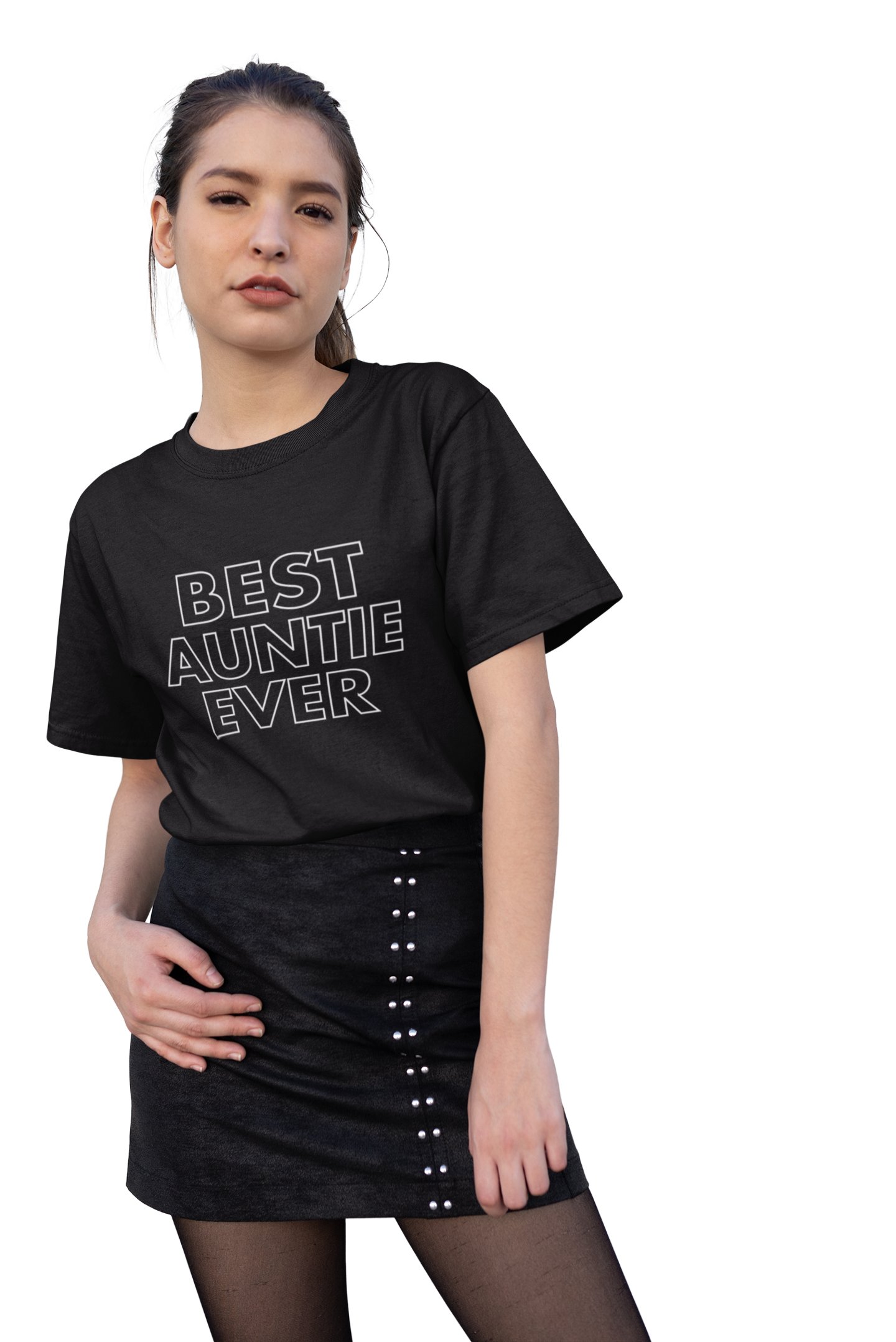 Best auntie ever-printed family themed cotton blended half-sleeve t-shirts made for women (black)