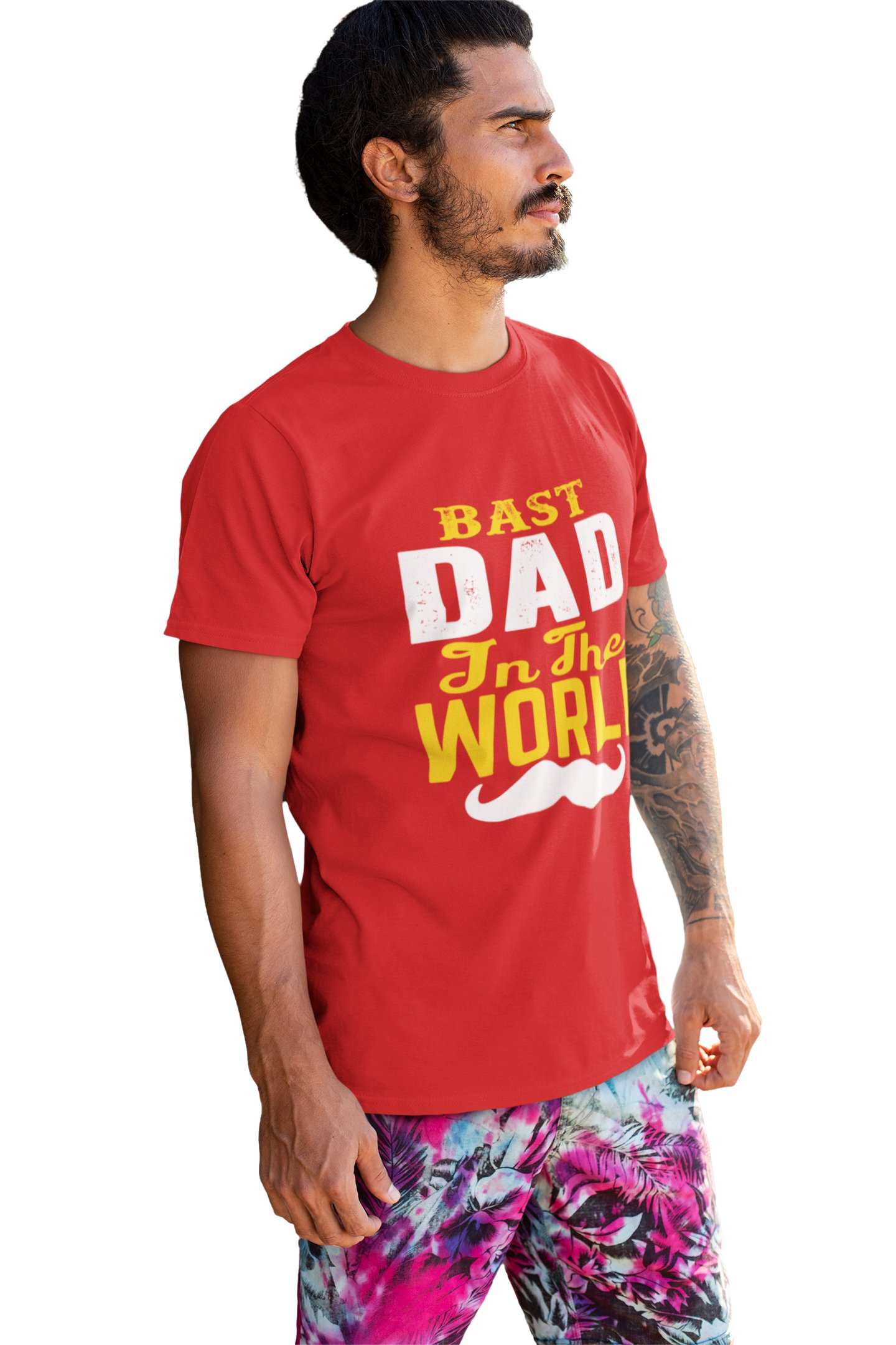 Best dad in the world -printed family themed cotton blended half-sleeve t-shirts made for men (red)