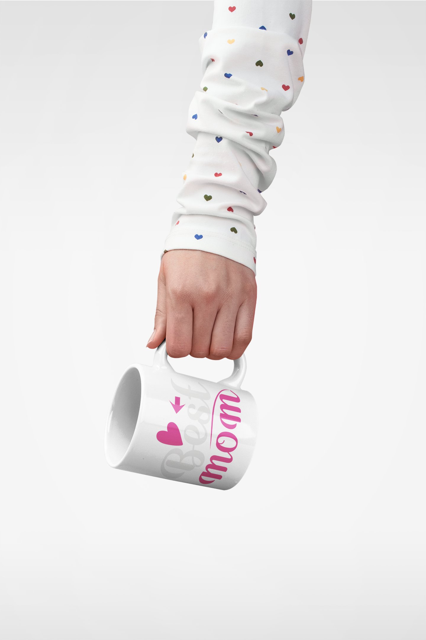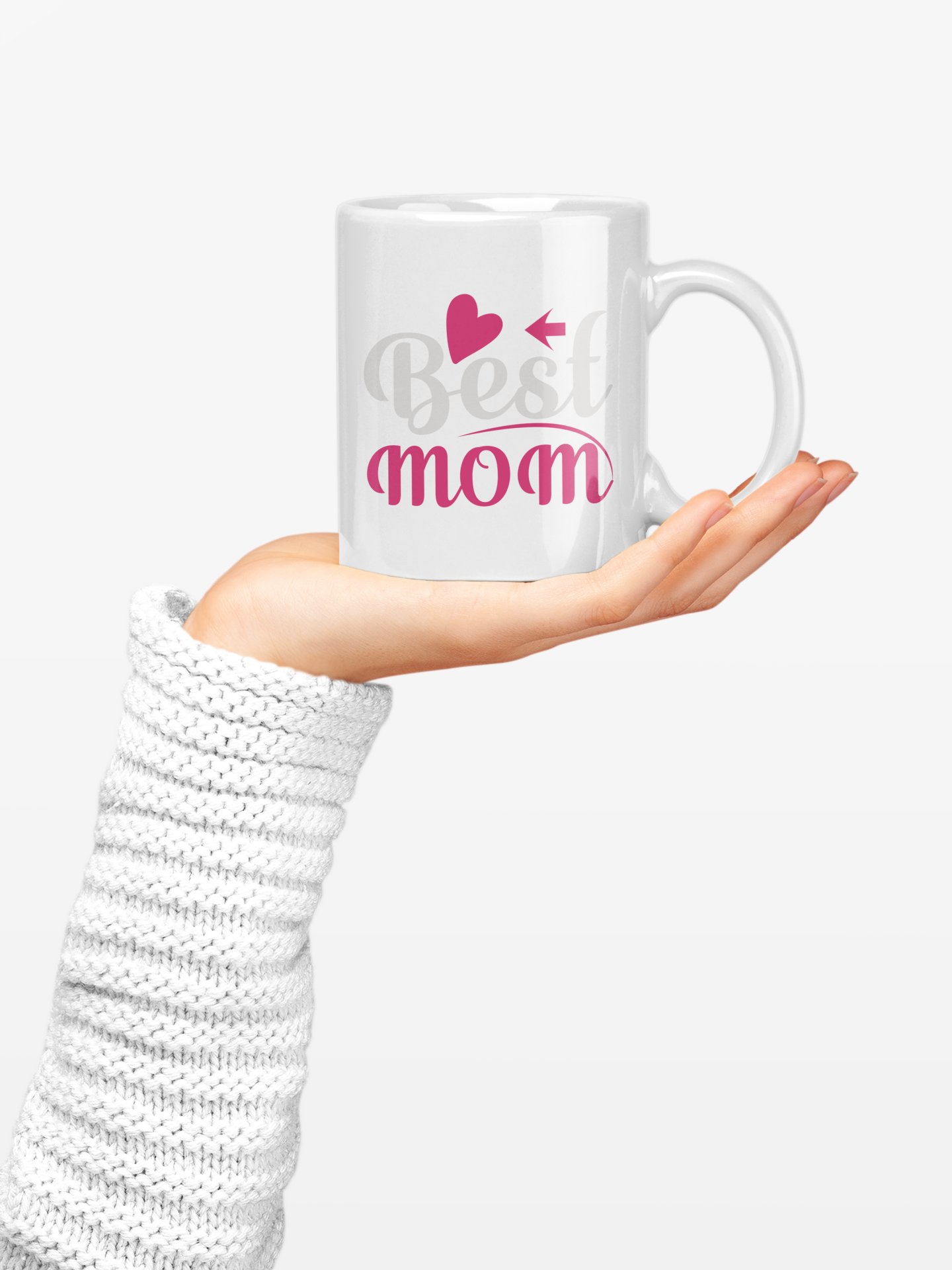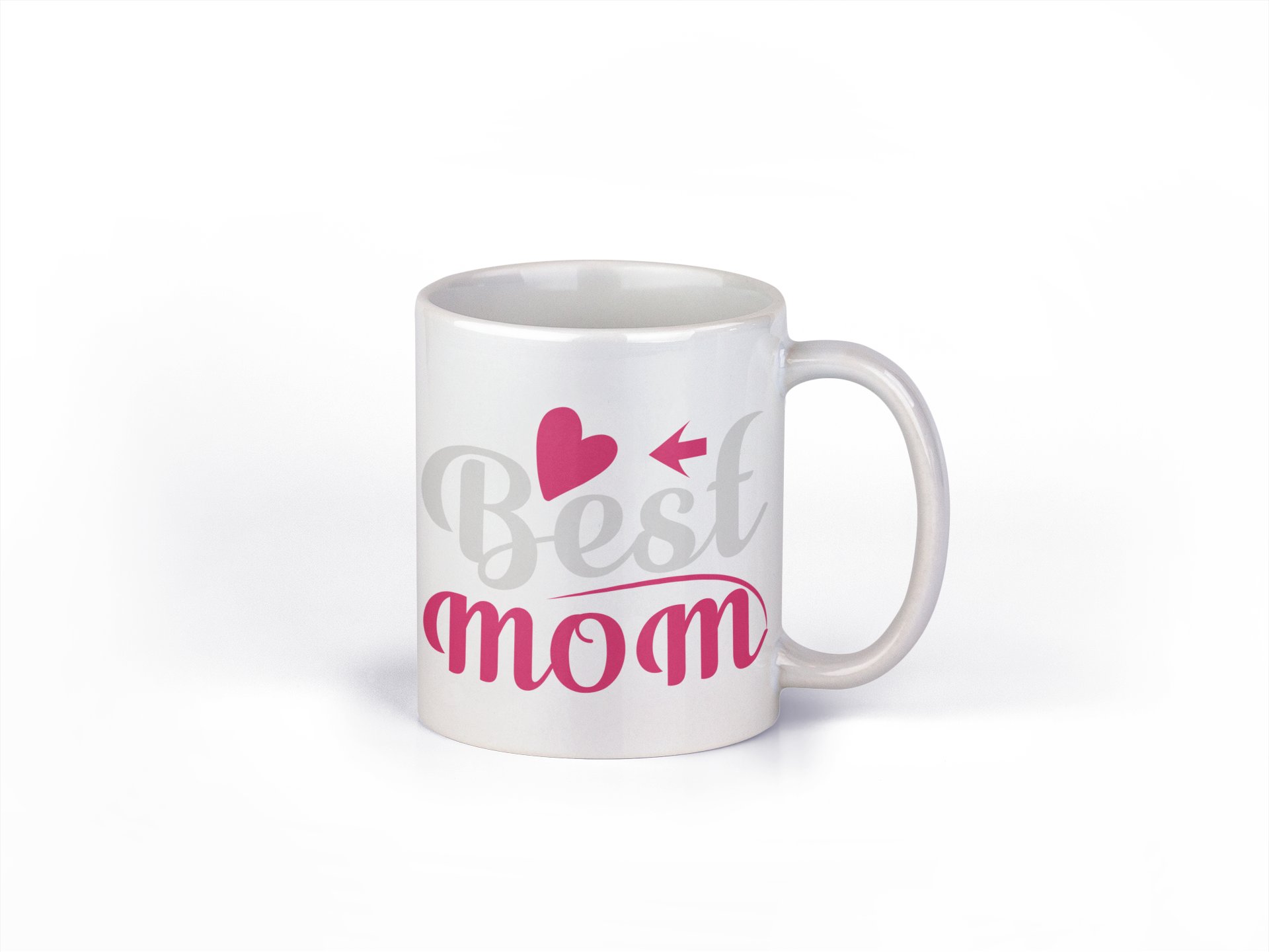 Best Mom Text (pink heart) - family themed printed ceramic white coffee and tea mugs/ cups