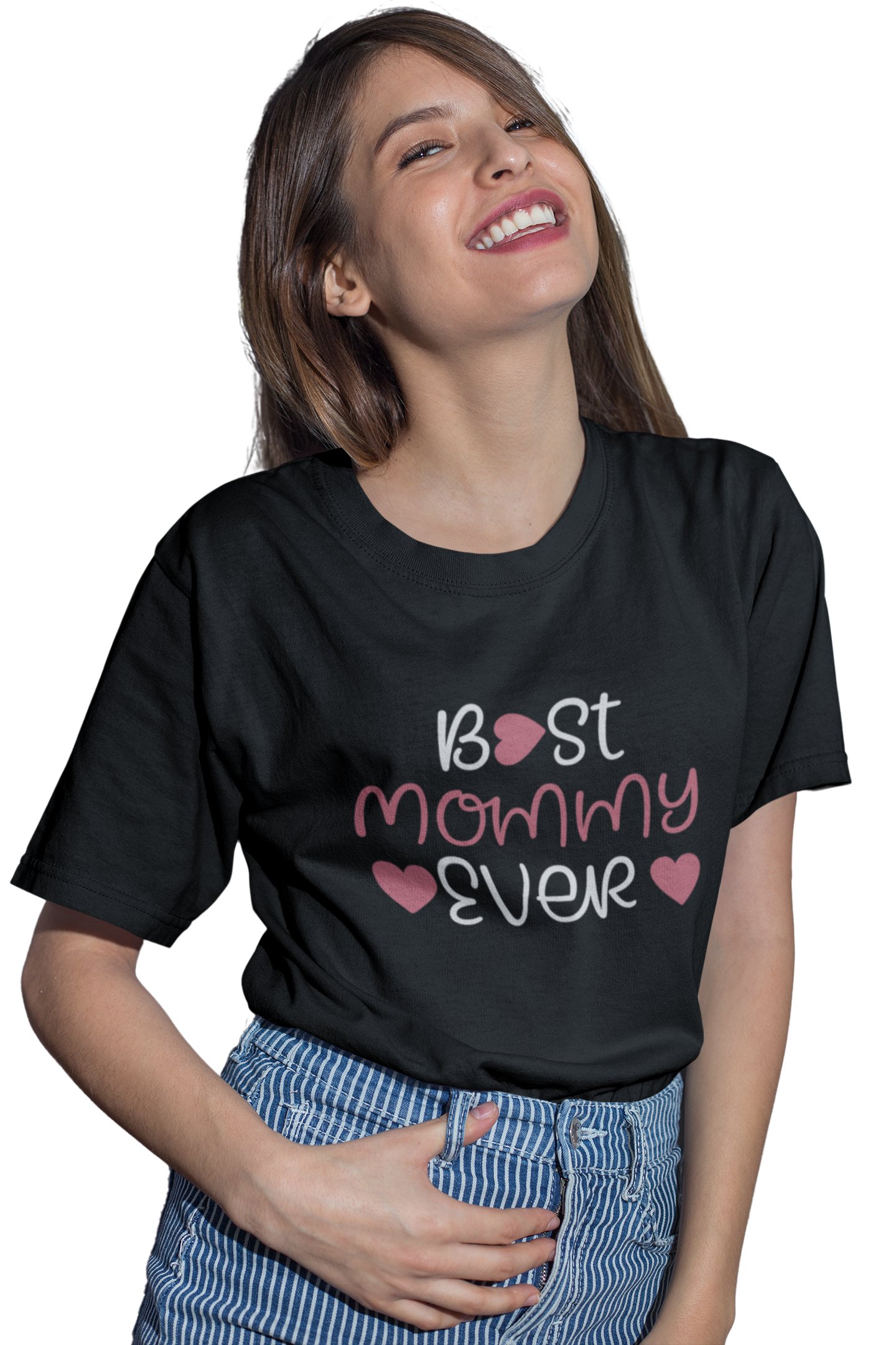Best Mommy ever-printed family themed cotton blended half-sleeve t-shirts made for women (black)