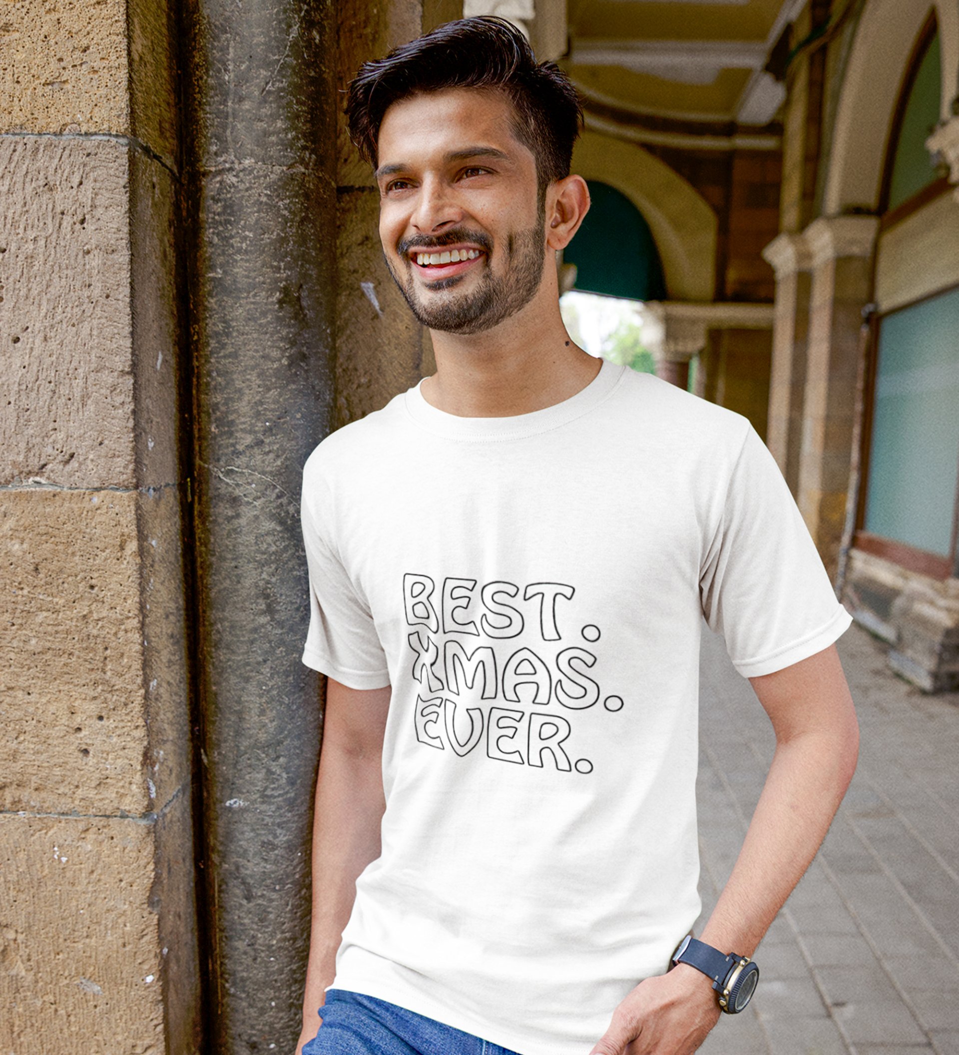Finest X-mas White Round Neck Cotton Half Sleeved Men's T-Shirt with Printed Graphics