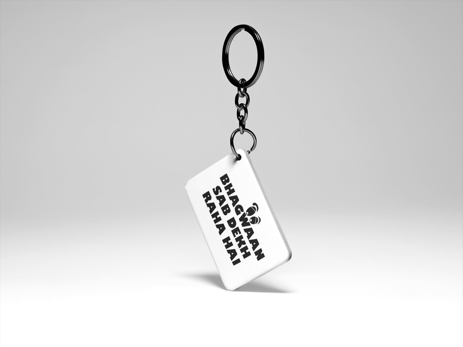 Bhagwaan Sab Dekh Raha Hai- acryllic printed white keychains/ keyrings for bollywood lover people