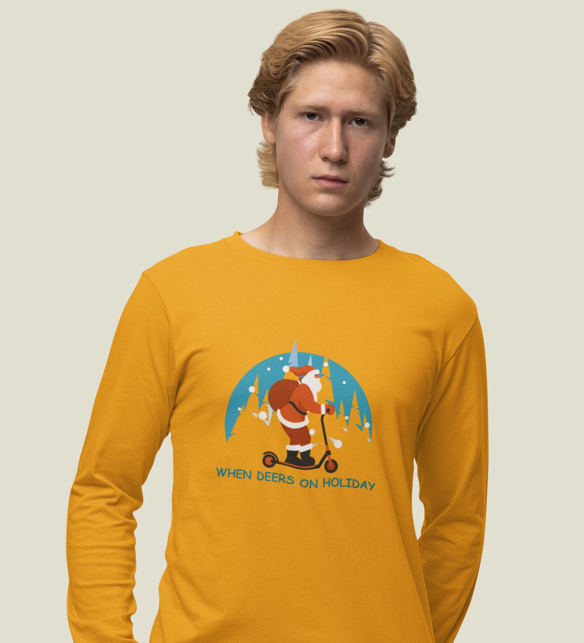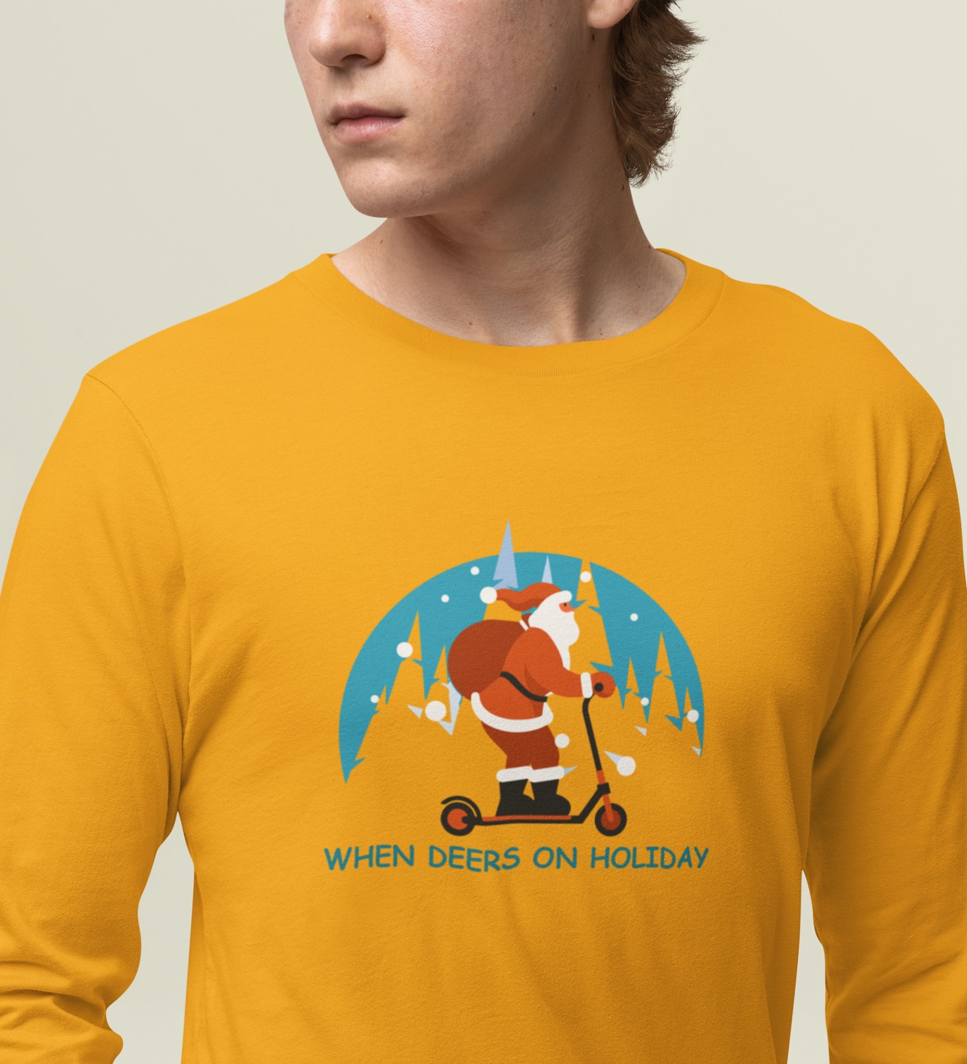 Biker Santa: Best DesignerFull Sleeve T-shirt For Christmas Yellow Unique Gift For Boys Girls