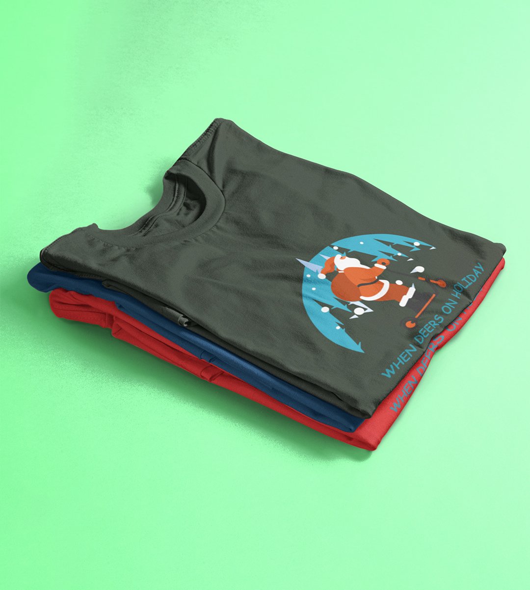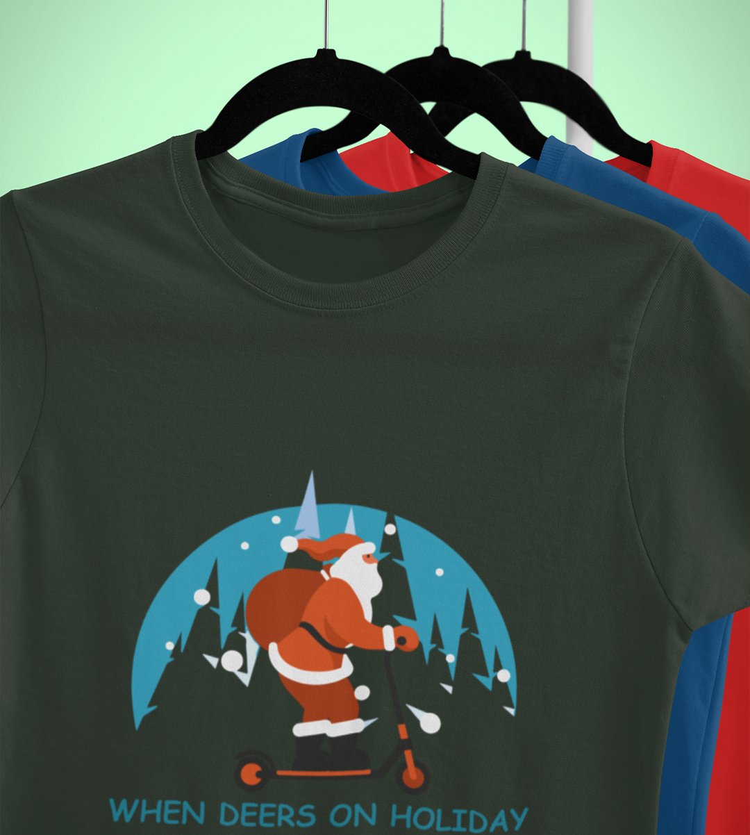 Biker Santa: Unique Printed T-shirt (Green) Perfect Gift For Christmas Boys Girls