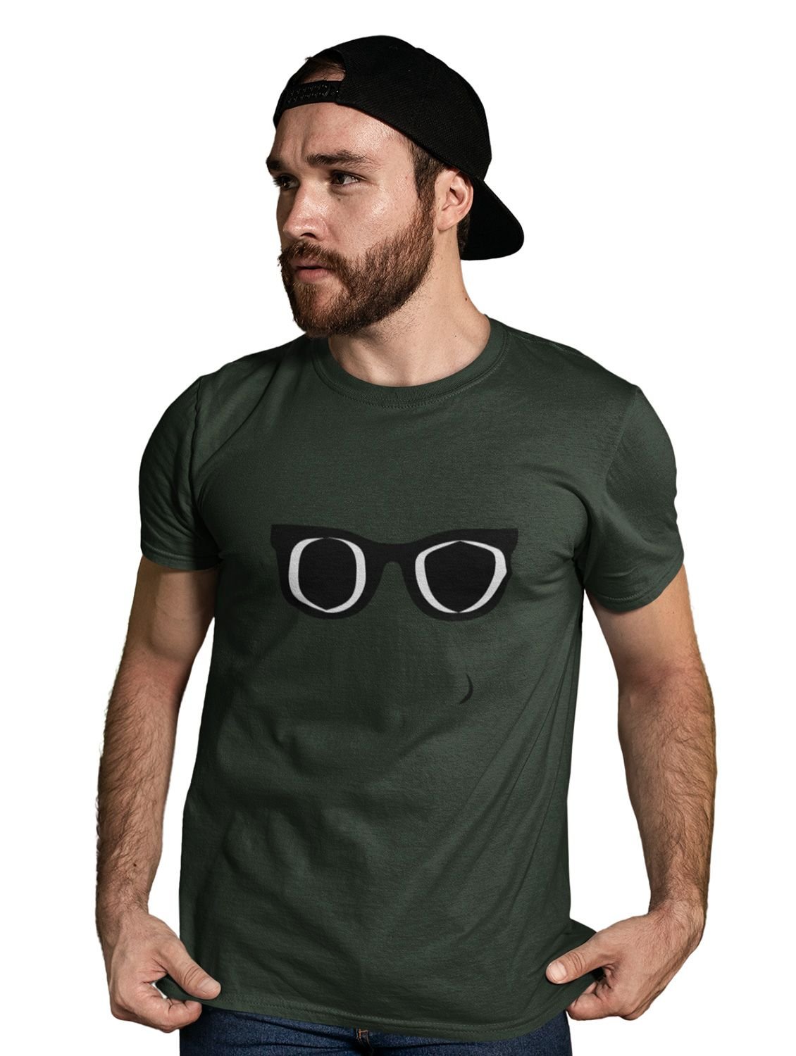Black and White glasses Emoji Printed T-shirt (Green) - Clothes for Emoji Lovers - Suitable for Fun Events - Foremost Gifting Material for Your Friends and Close Ones