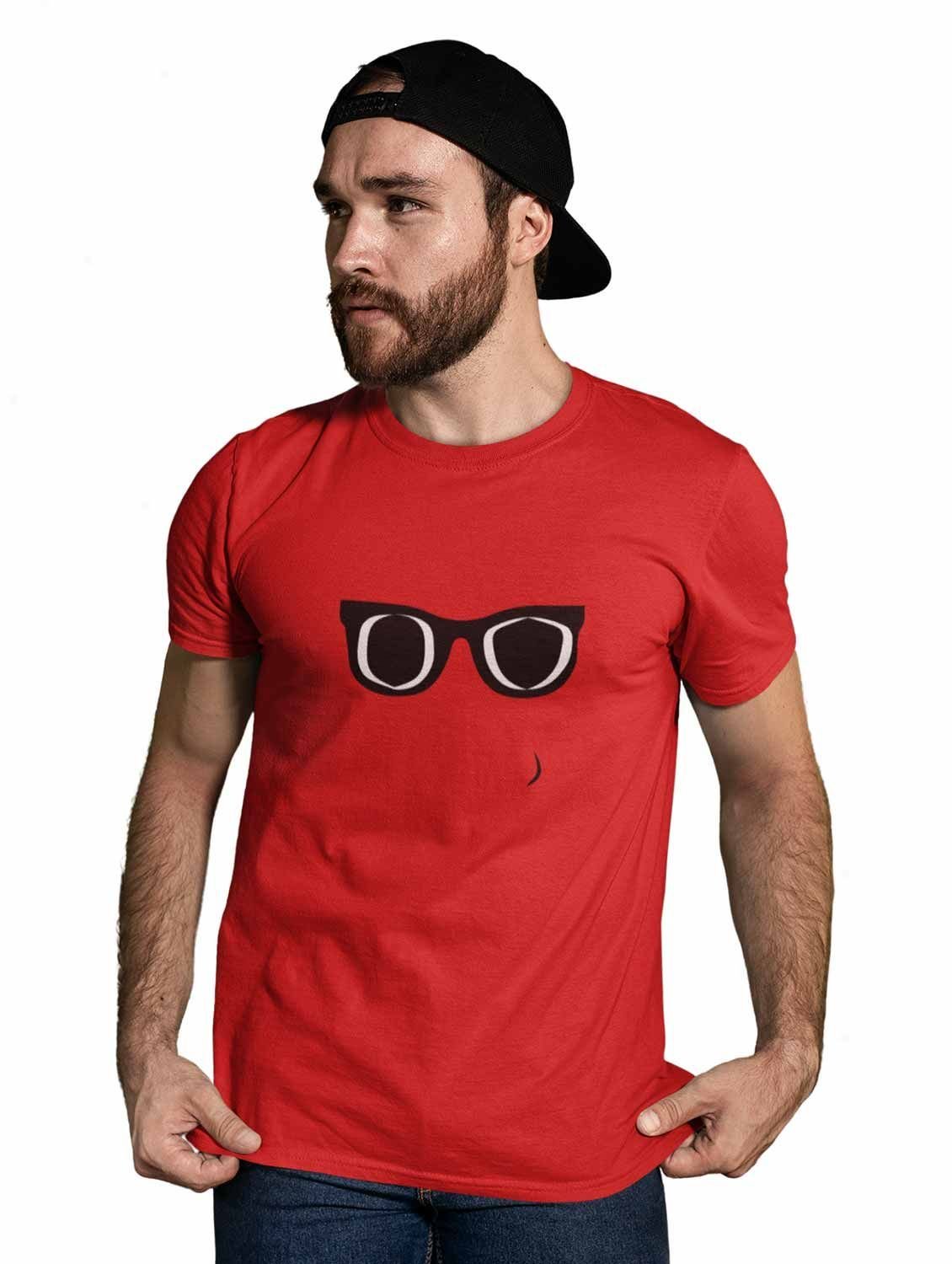 Black and White glasses Emoji Printed T-shirt (Red) - Clothes for Emoji Lovers - Foremost Gifting Material for Your Friends and Close Ones