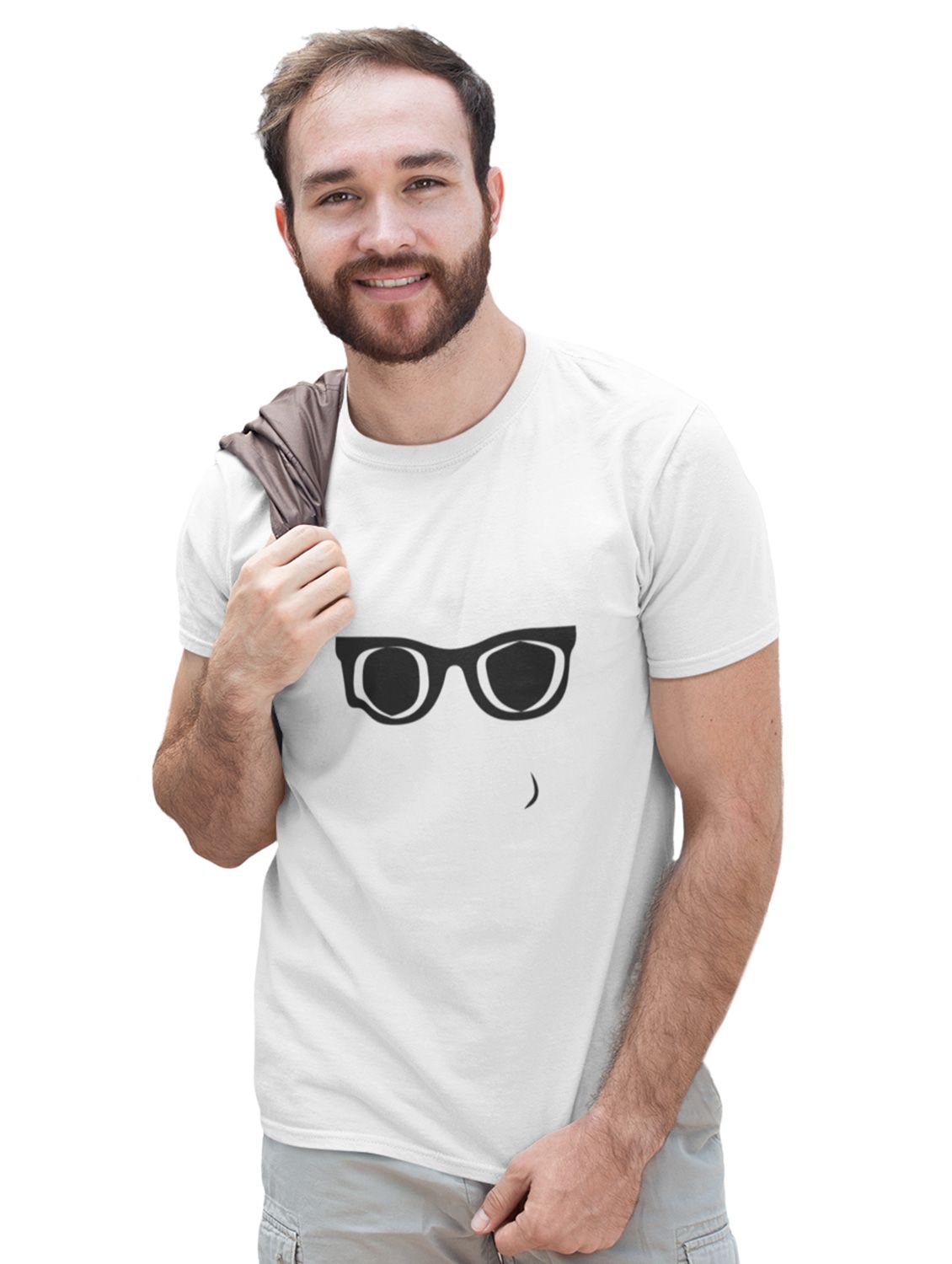 Black and White Glasses Emoji Printed T-shirt (White) - Clothes for Emoji Lovers -Foremost Gifting Material for Your Friends and Close Ones