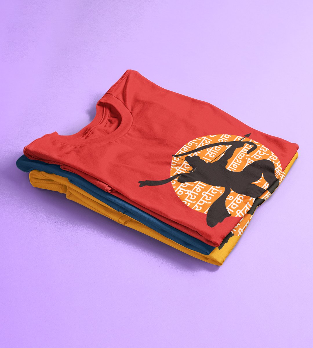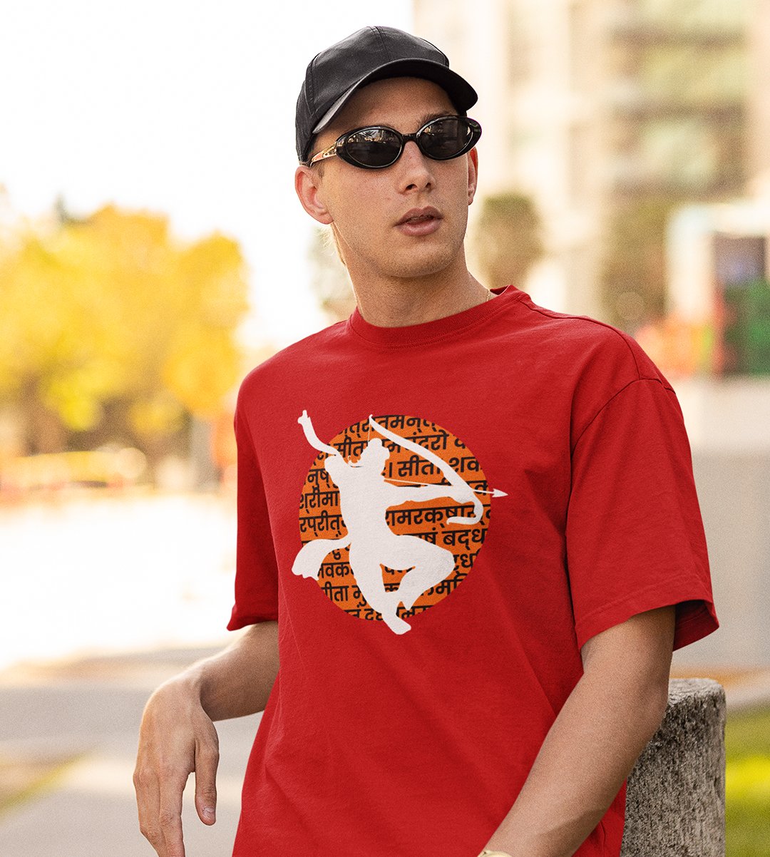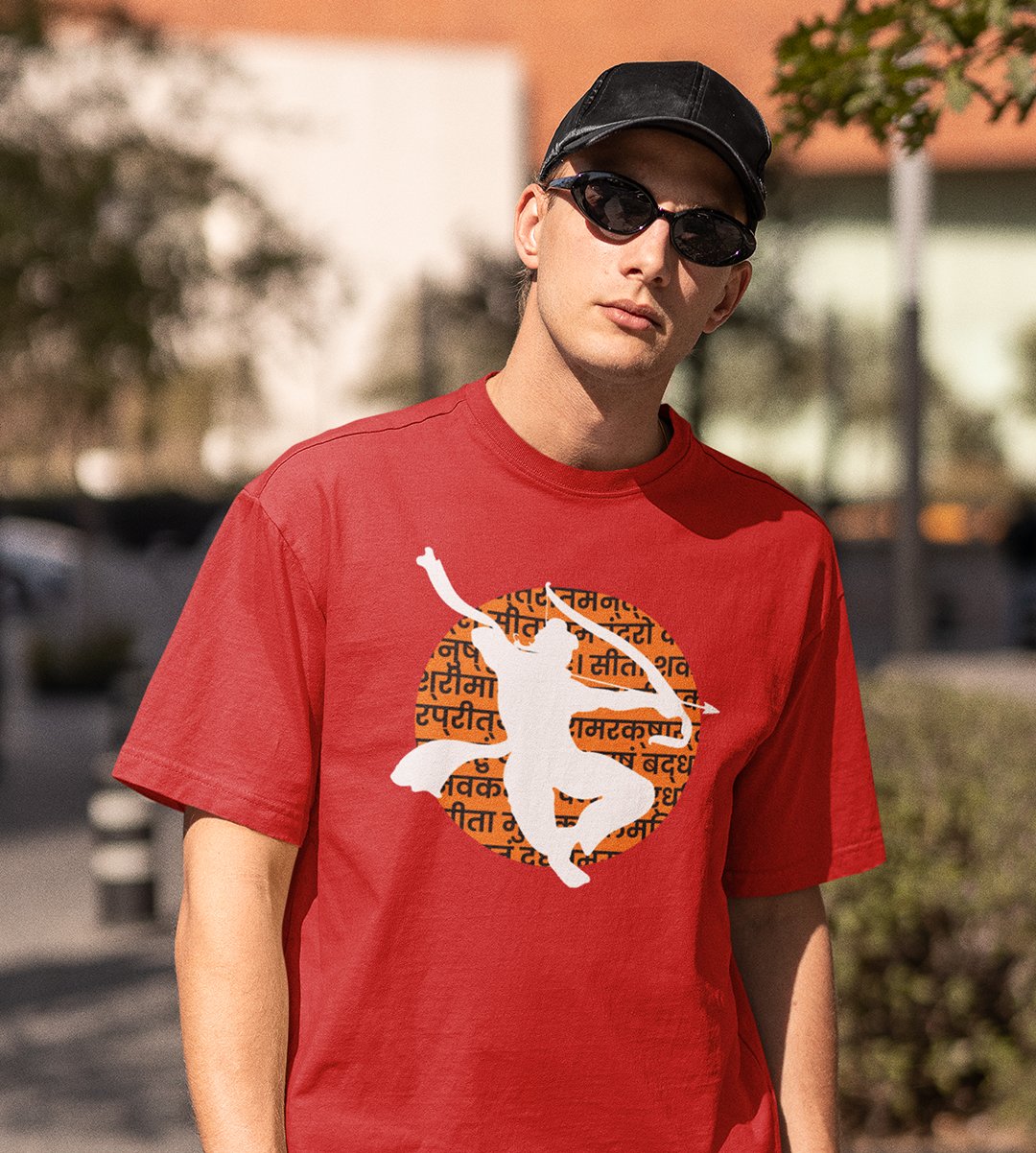 Black shadowed lord Ram printed unisex adults round neck cotton half-sleeve red tshirt specially for Navratri festival/ Durga puja