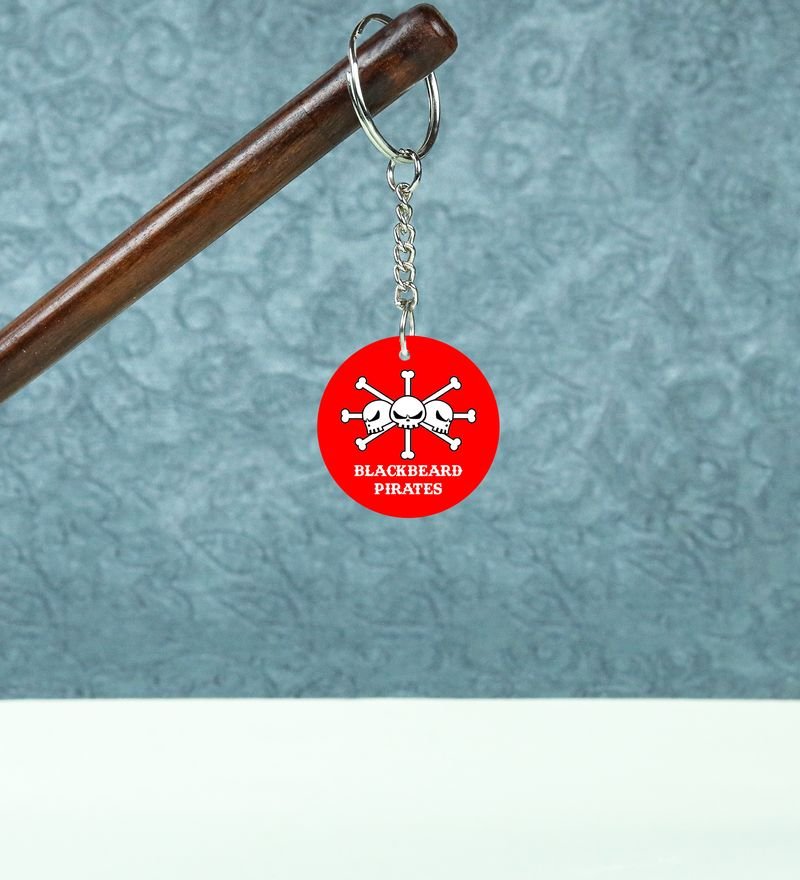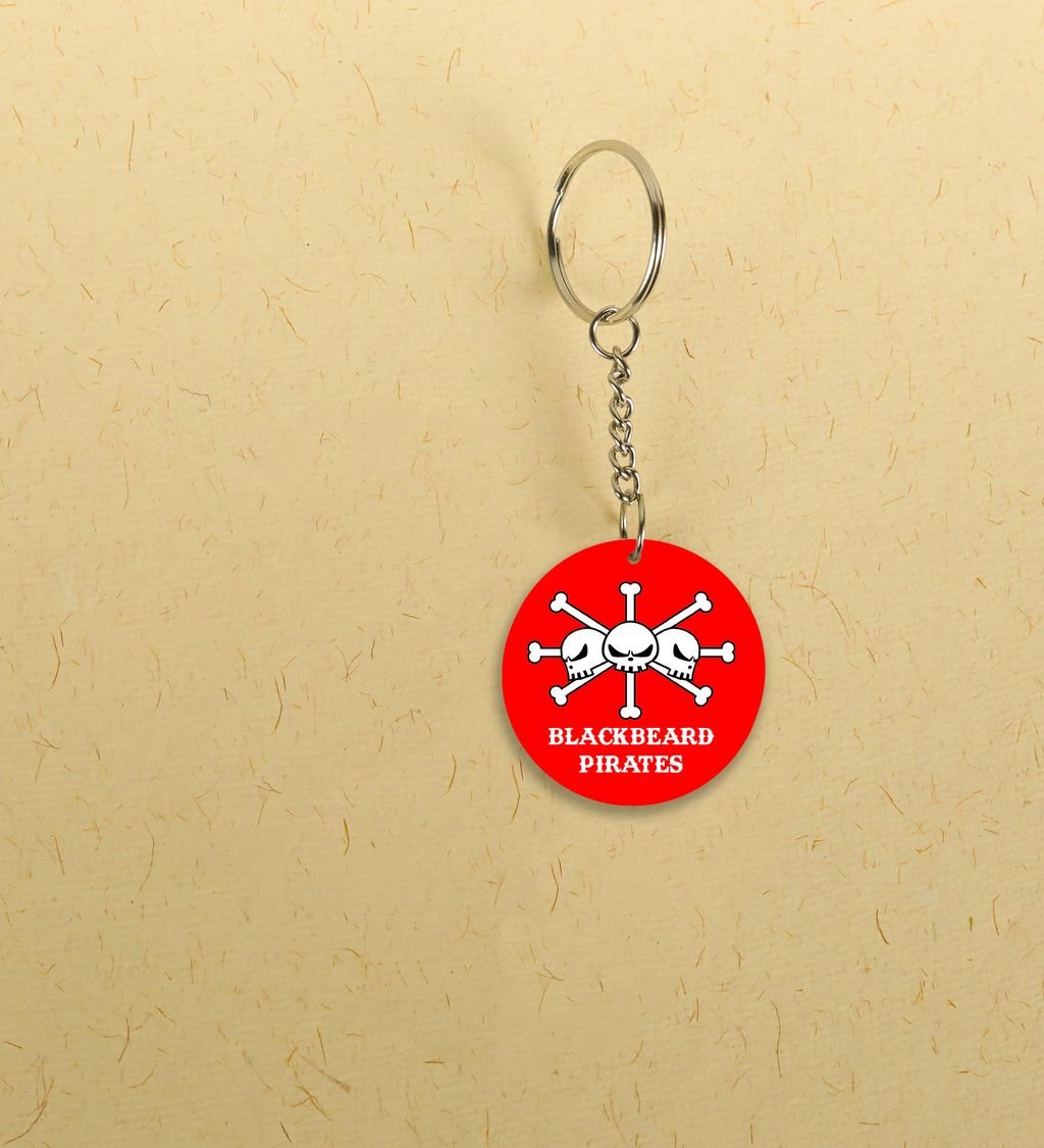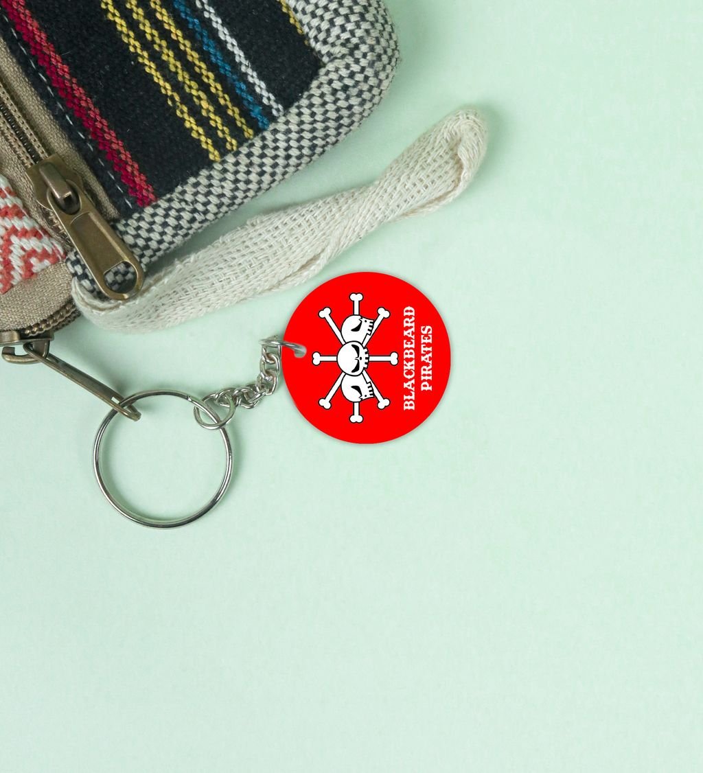 Blackbeard Pirates Logo The Sign of Pirate Authority Anime Printed Round Keychains Pack of 2