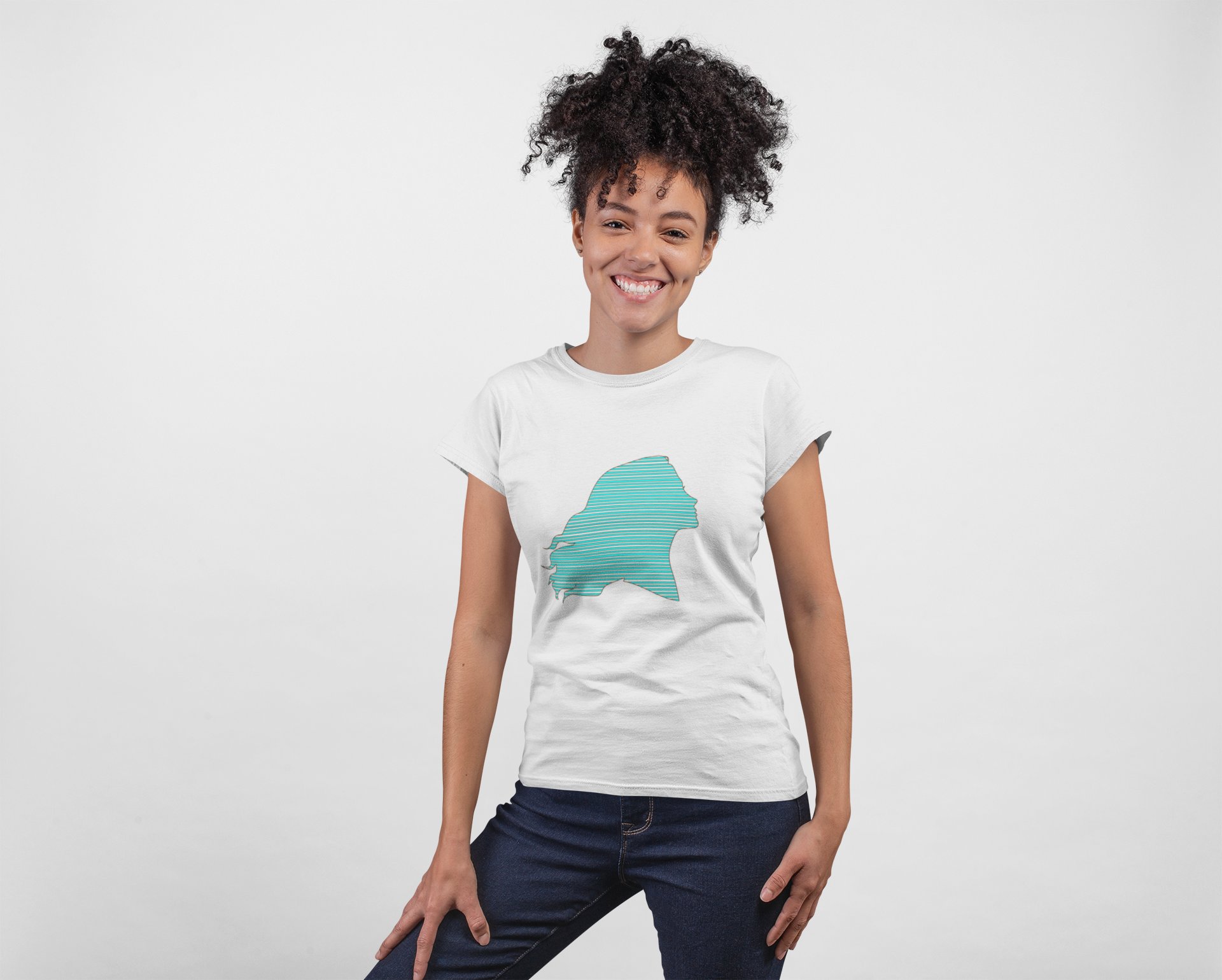 Blue Lady - Line Art for Female - Half Sleeves T-shirt