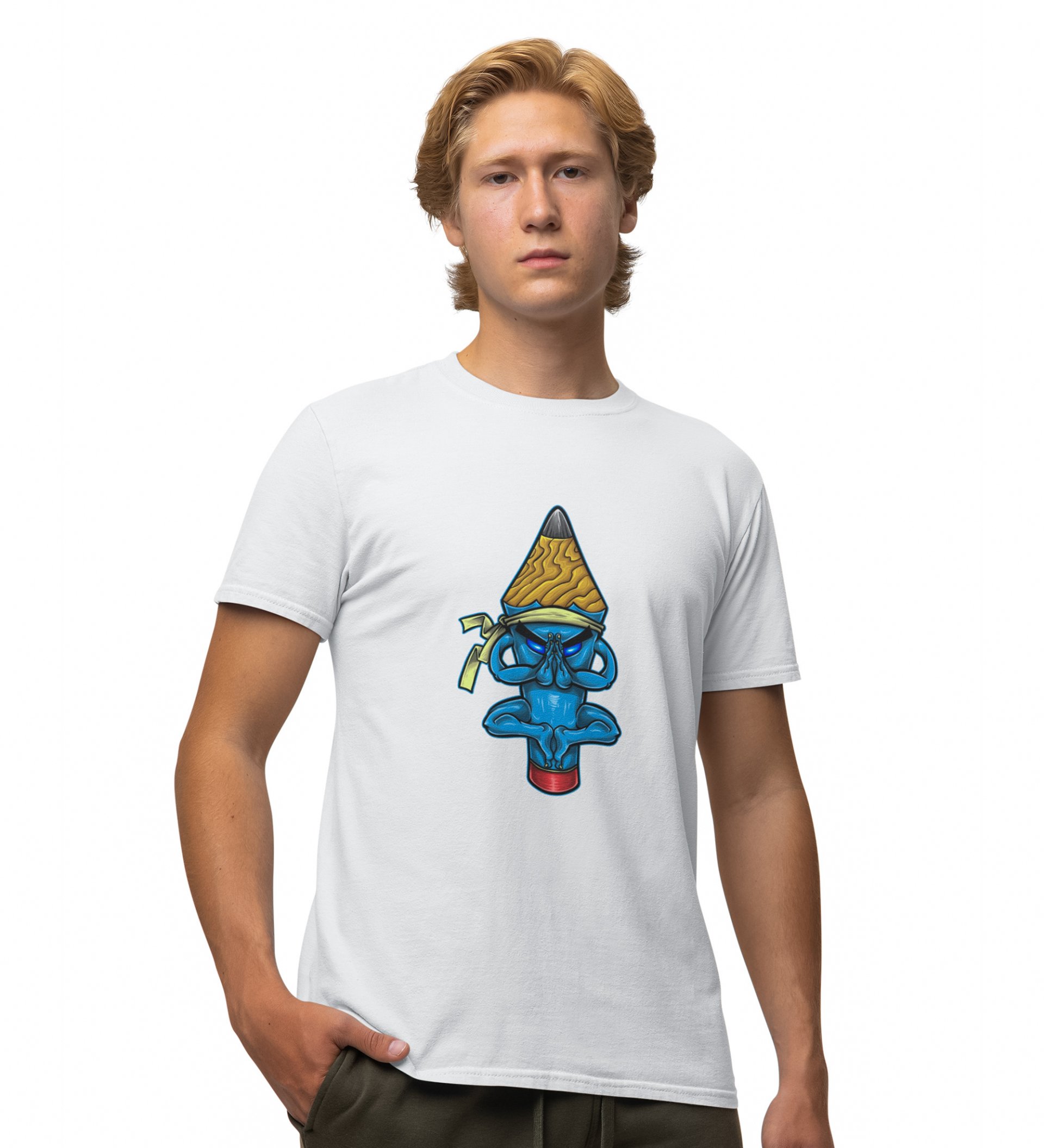 Pencil-The Monk White Round Neck Cotton Half Sleeved Men's T-Shirt with Printed Graphics