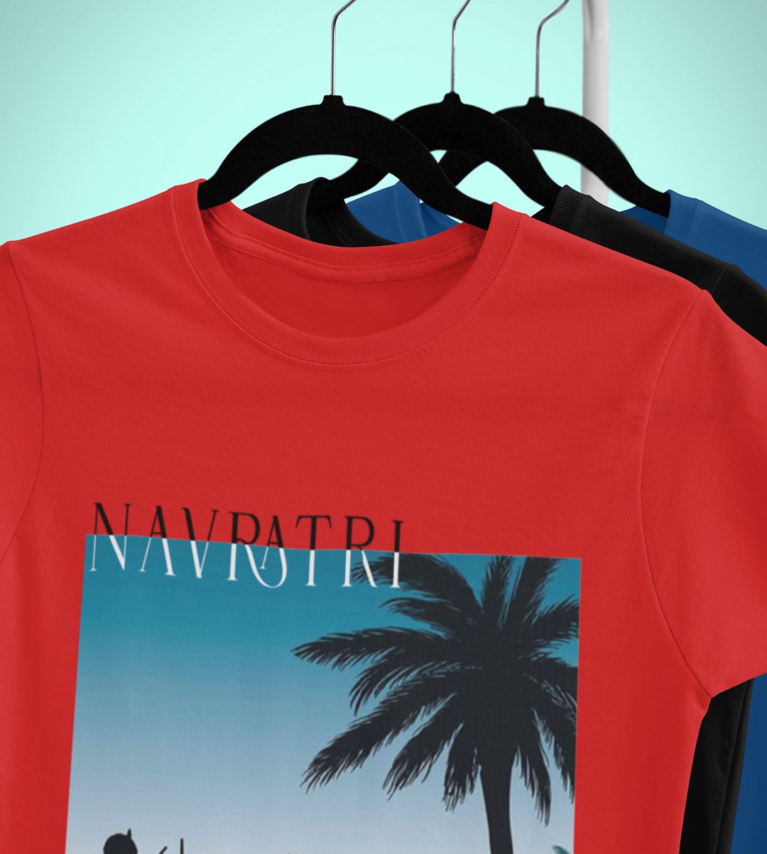 Navratri is a very auspicious festival for hindus. It takes place at the beginning of October and sometimes September. Enjoy the 9 days of festivities with full zeal and make yourself submerged in the love of Maa Durga. Navratri is also known as Durga Puja. And with this Tees, you can shine like a star during this festive season with our navratri themed cotton half sleeved Tshirts. You can pair our t-shirts with trousers and denim of your choice and make it a weekday smart casual or weekend wear. This is durable. This tshirt is smooth and soft which makes you comfortable to wear during all seasons. The printing in it is durable and odourless. It has five sizes, S,M,L,XL,XXL. The Tshirt colour is intact even after repeated washes. It can be kept in your wardrobe and hangers. Please avoid washing mashine to clean this Tee, it may affect the print. Hand wash only. We have brought you many navratri related designs printed on our different colour Tshirts to choose from. Grab it now.