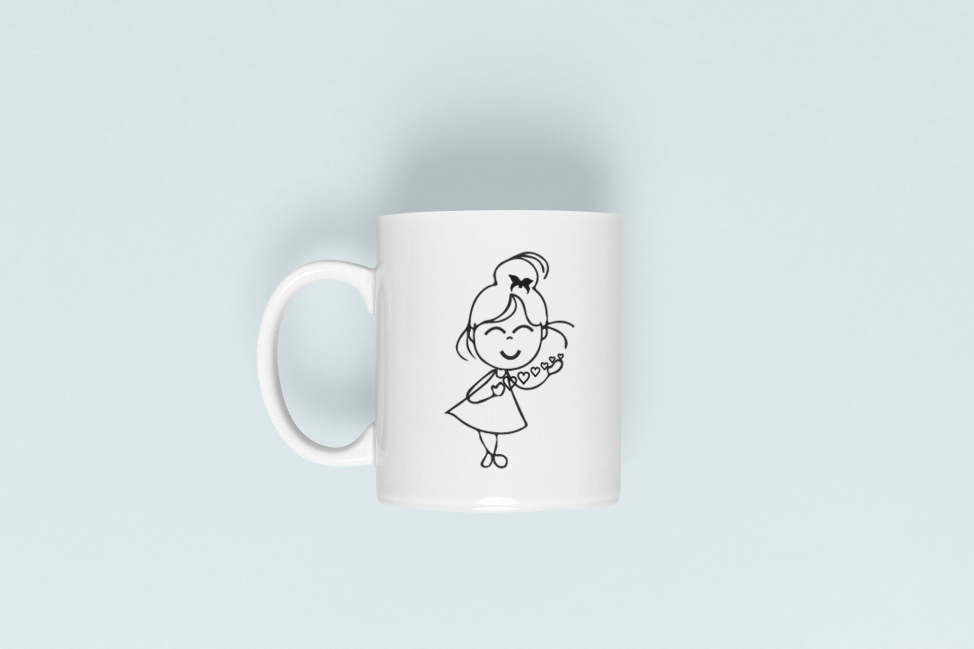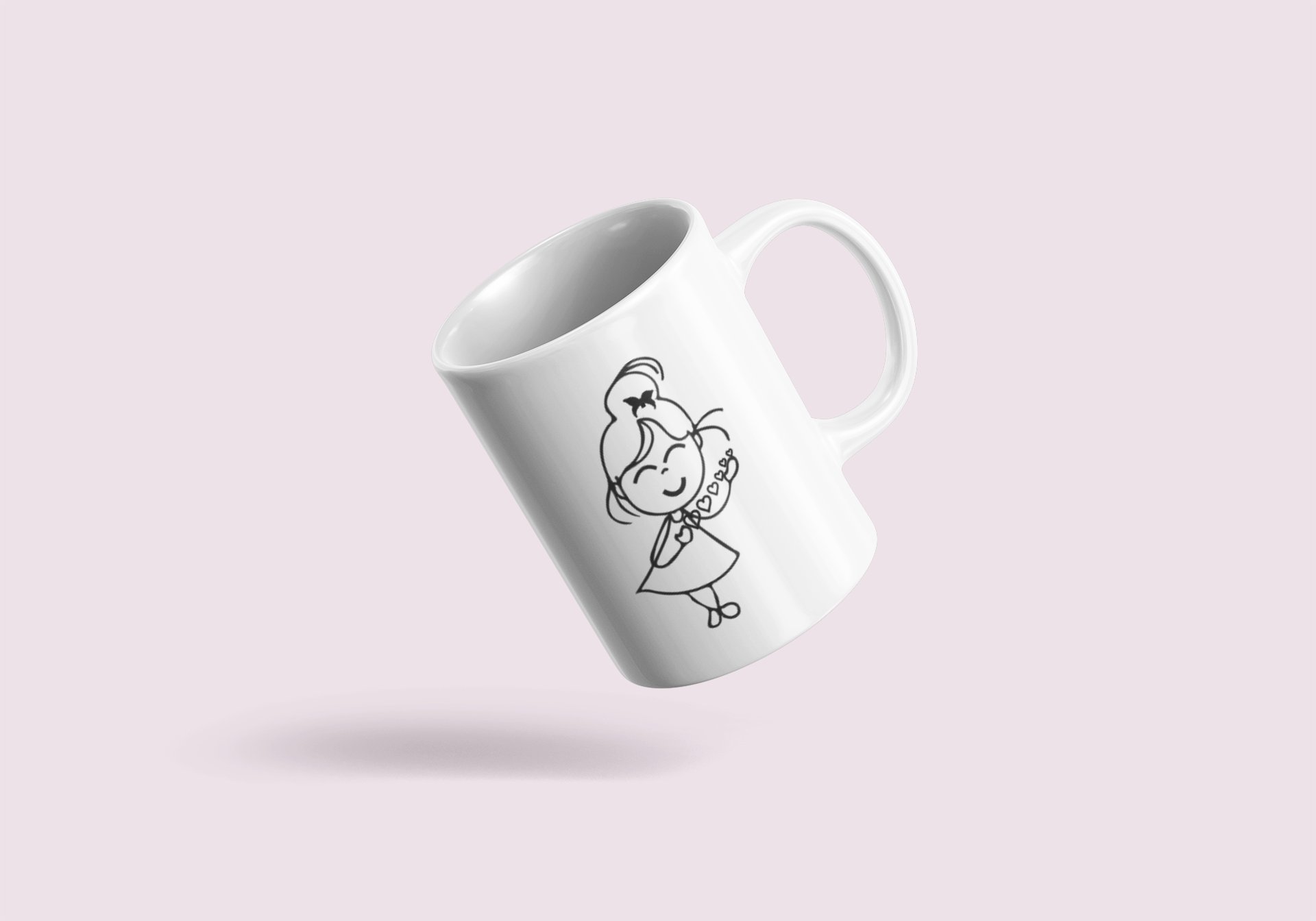 Blushing Girl- line art themed printed ceramic white coffee and tea mugs/ cups