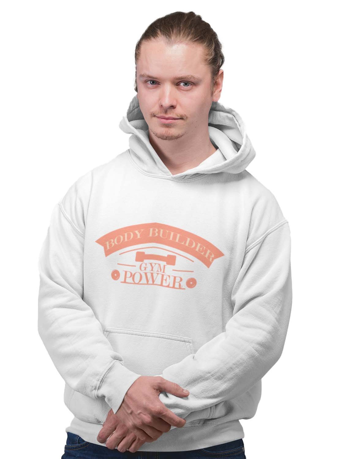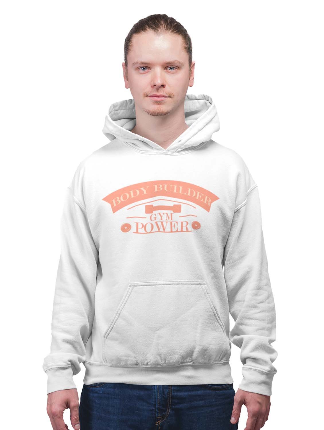 Body Builder, Gym Power,(BG Orange) printed artswear white hoodies for winter casual wear specially for Men