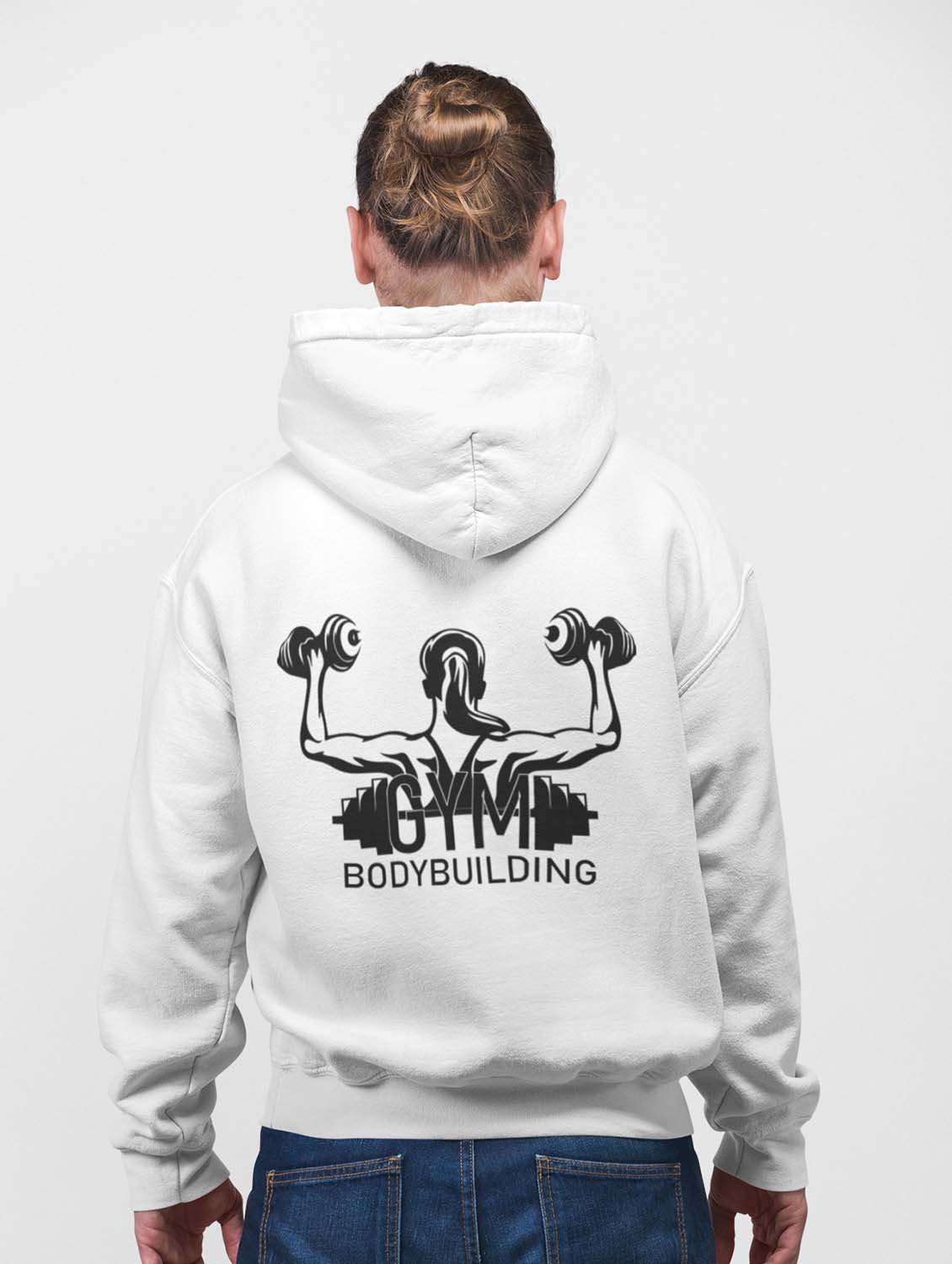 Bodybuilding, A Girl Lifts Dumble printed artswear white hoodies for winter casual wear specially for Men
