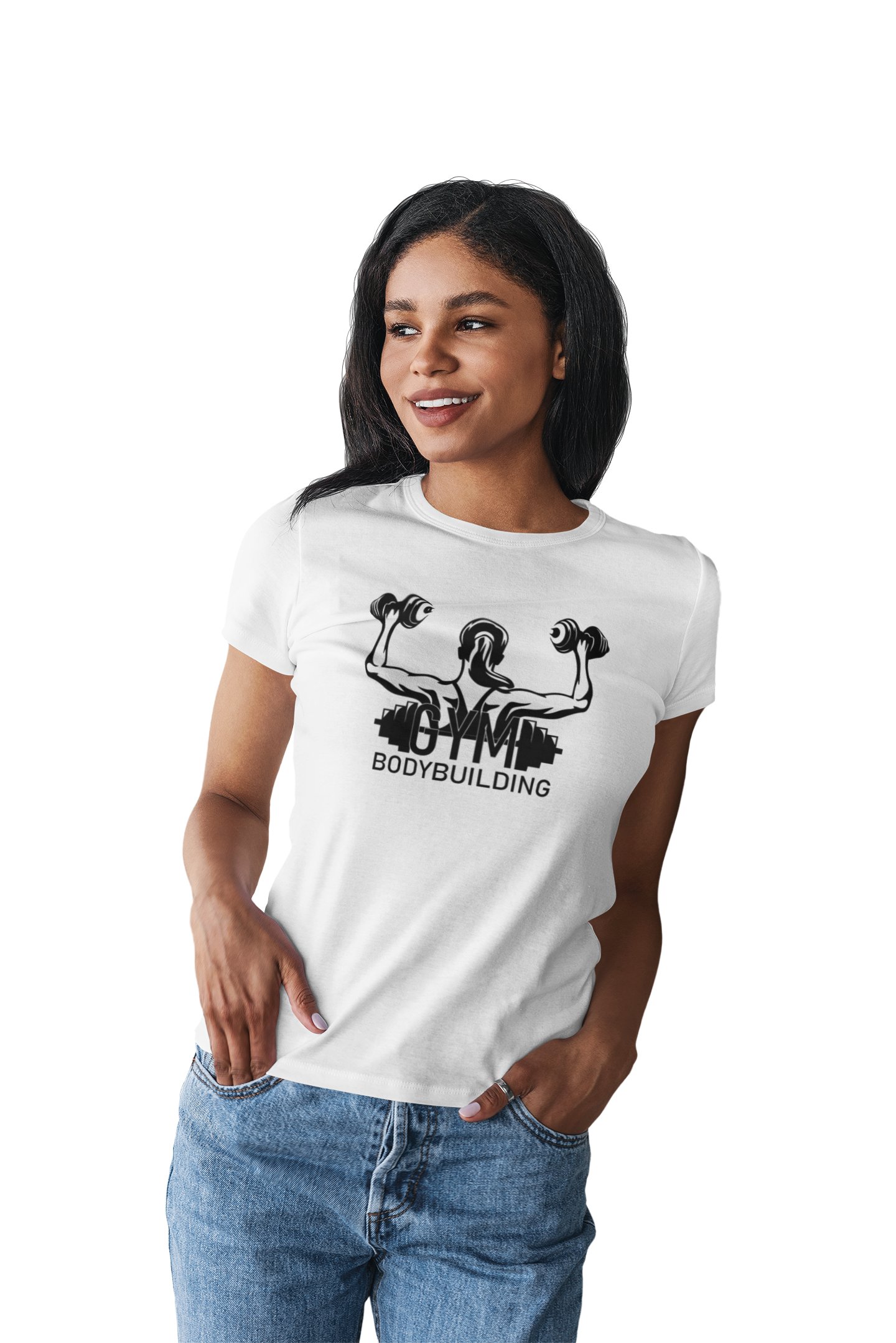 Bodybuilding, A Girl Lifts Dumble, Round Neck Gym Tshirt (White Tshirt) - Clothes for Gym Lovers - Suitable for Gym Going Person - Foremost Gifting Material for Your Friends and Close Ones
