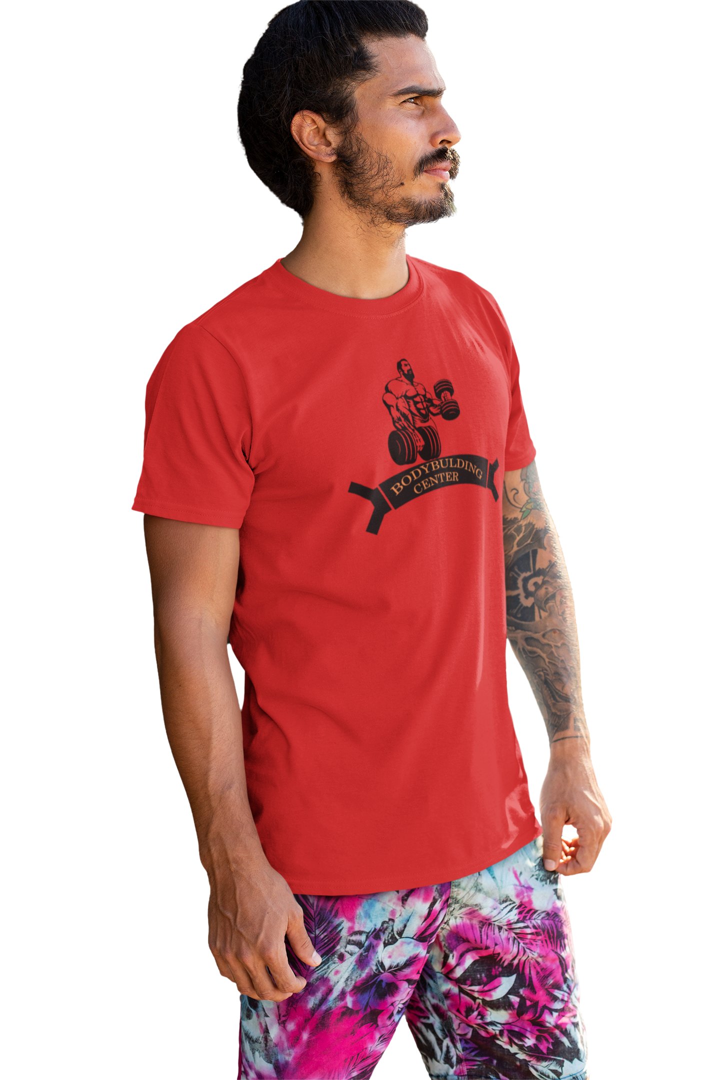 Bodybuilding Center, (BG Black), Round Neck Gym Tshirt, (Red Tshirt) - Clothes for Gym Lovers - Suitable for Gym Going Person - Foremost Gifting Material for Your Friends and Close Ones