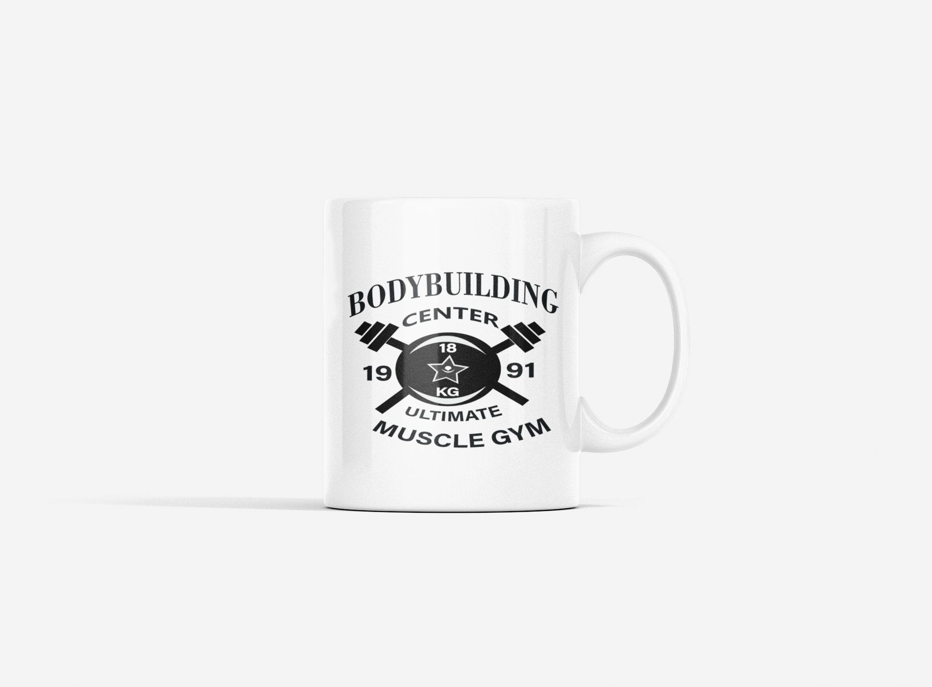 Bodybuilding Center, Ultimate Muscle Gym - gym themed printed ceramic white coffee and tea mugs/ cups for gym lovers